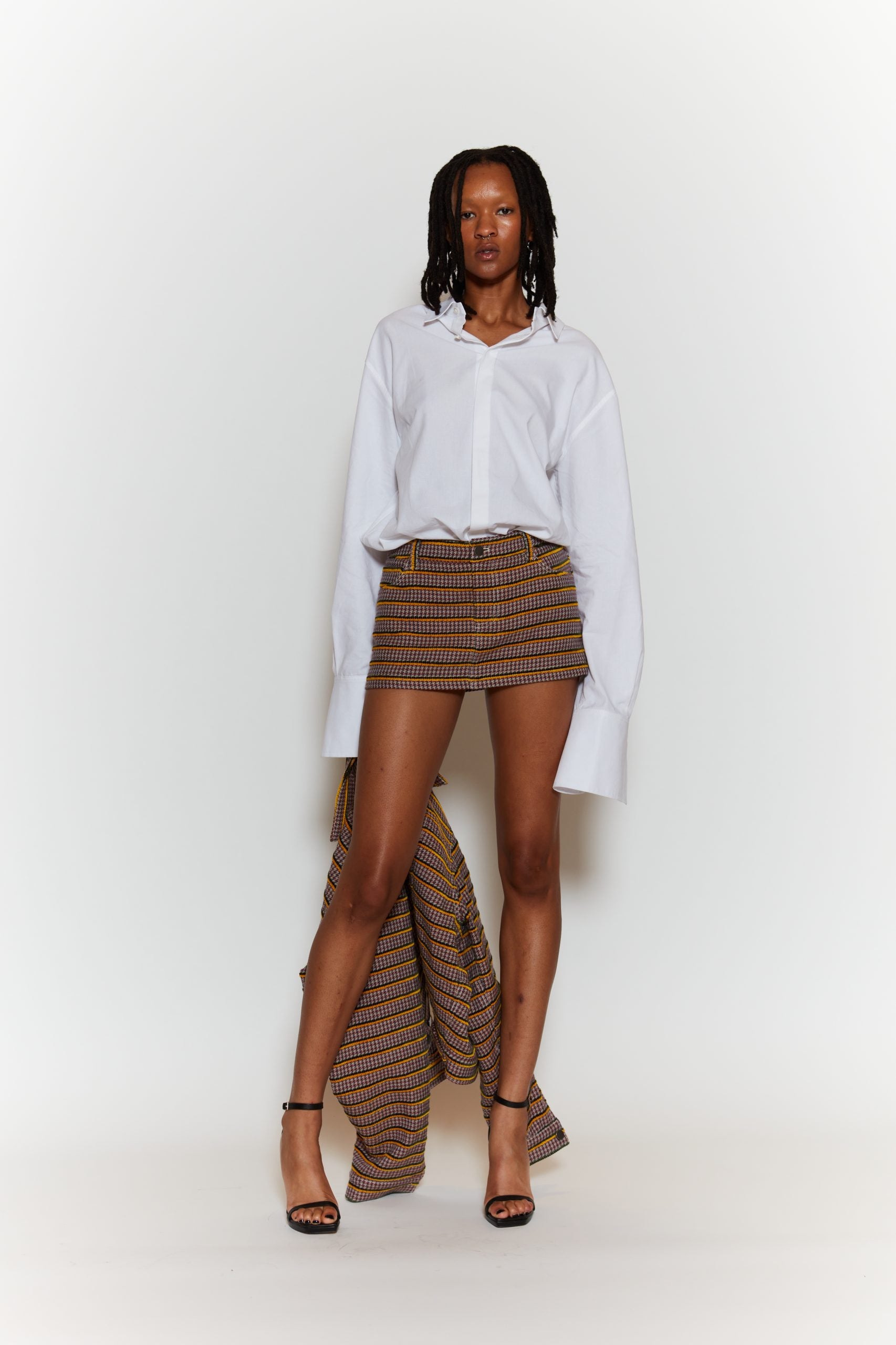 Additional stand-out pieces that gave collegiate energy were the collection’s plaid printed pants and miniskirts, ringer style tops, and a sweatshirt that read “BUSHWICK.” Tank tops with cutouts, skinny or thick straps and mesh tops with adjustable rushing, even a maxi dress all came together to give the audience a scholastic fashion experience. While the show was outside of the usual NYFW calendar, it was because the collection was a celebration of K.NGSLEY’s three-year anniversary as a brand.