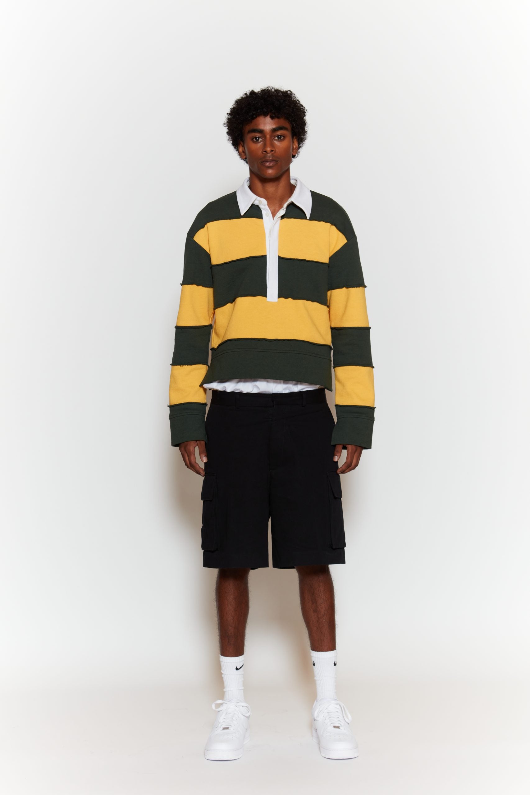 Rugby shirts, and designed tank tops, T-shirts, and miniskirts were all part of the K.NGSLEY uniform this time around. The designer’s ready-to-wear wardrobe he created also consisted of accented boxers peeking from the model’s pants, his Clandestine combat boots, and sterling silver jewelry that models wore which featured a PReP pill design. This collection which was split into two parts, “Act 1” and “Act 2” was about “schooling” the girls and the gays, using preppy language fused with the brand’s own design codes and house music bumping in the background as models sashayed down the runway.