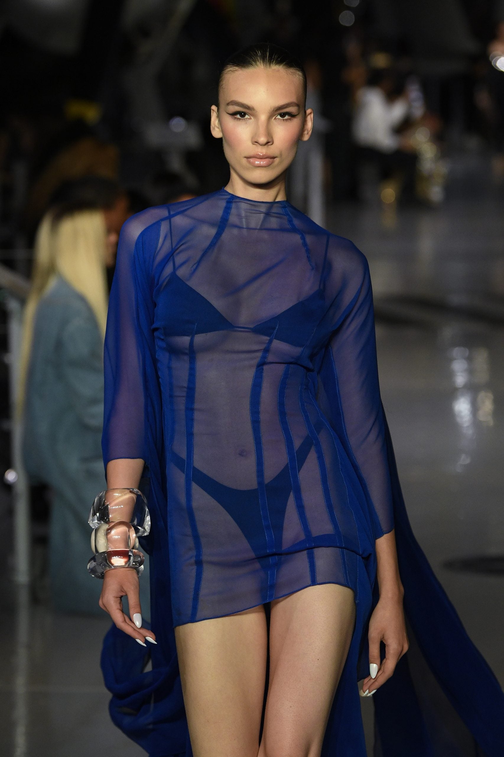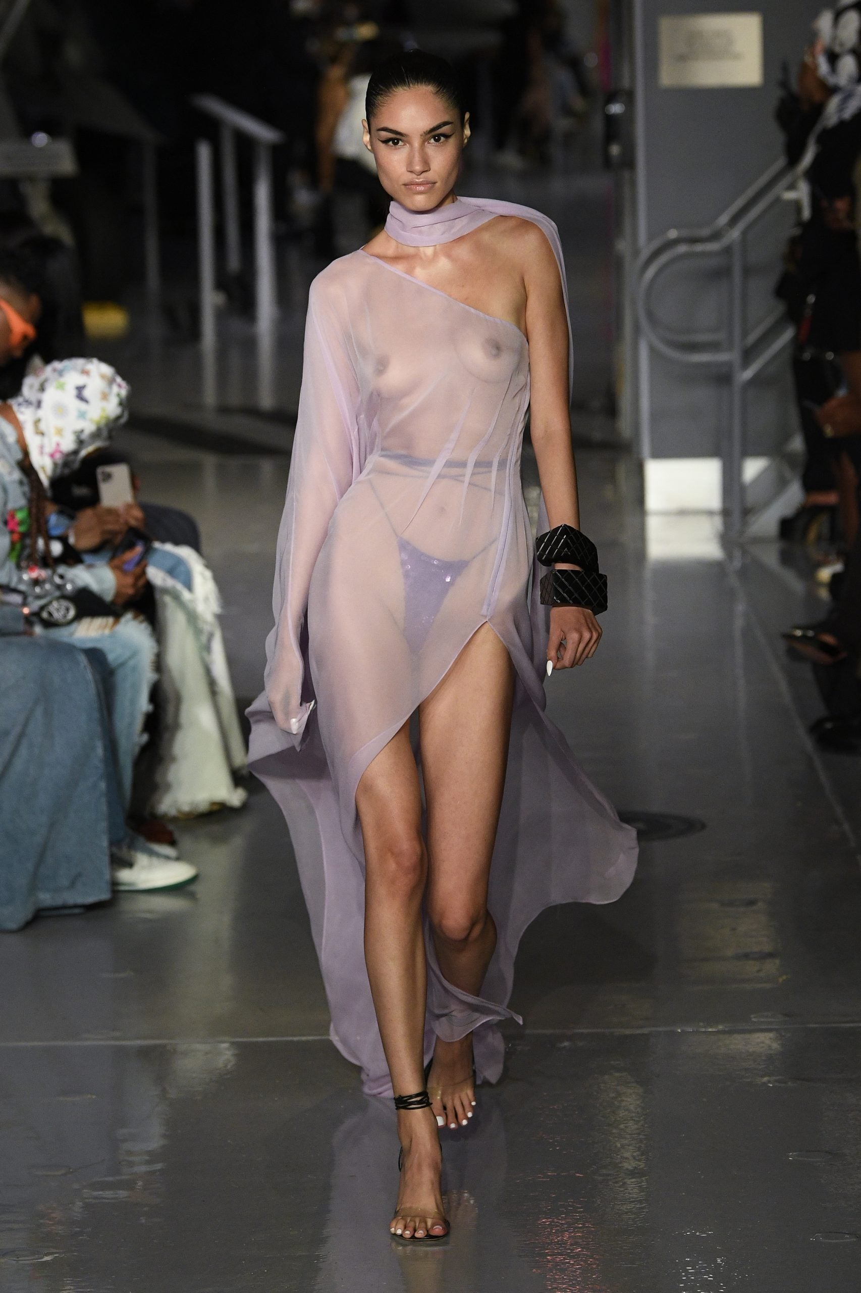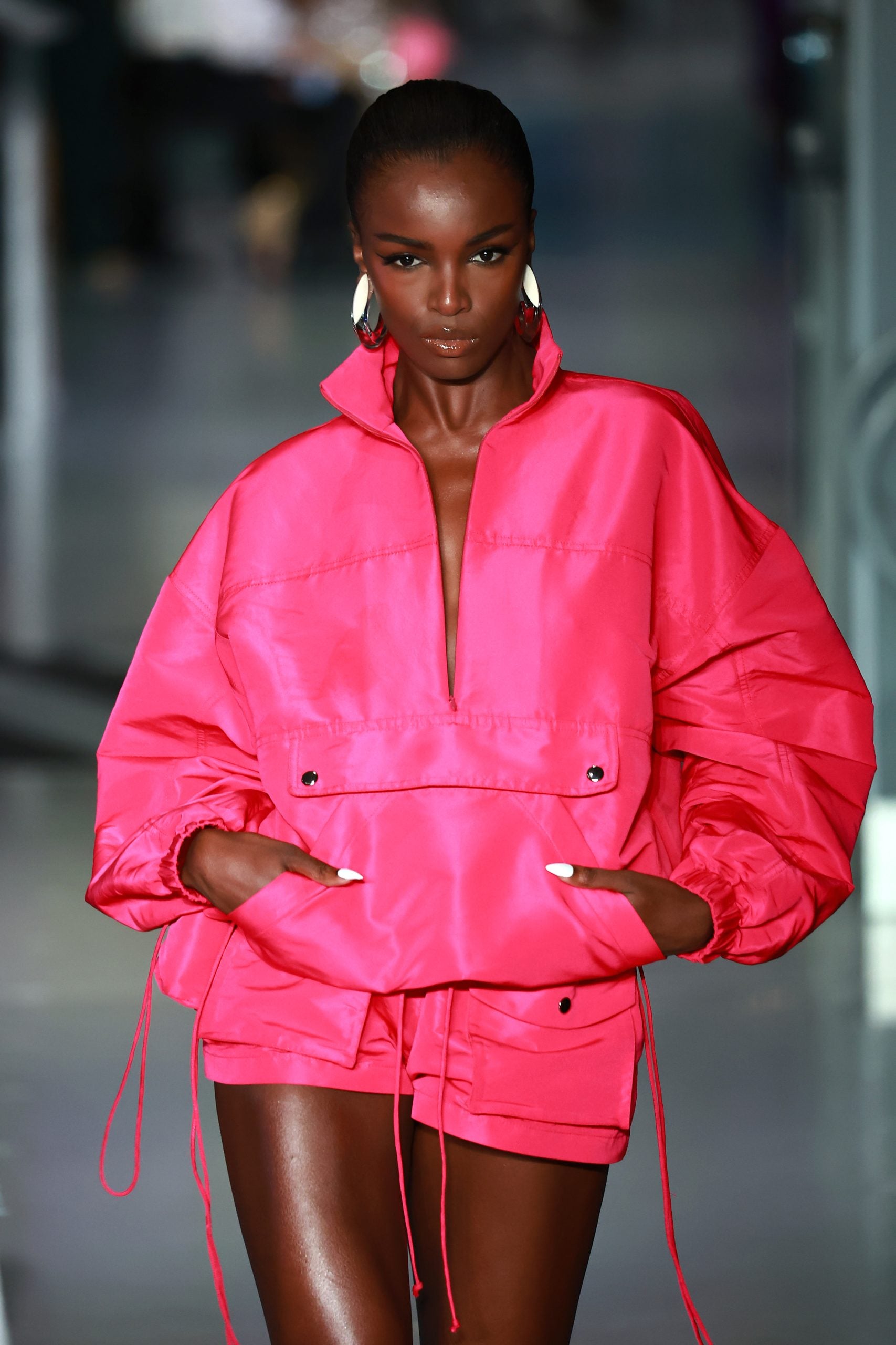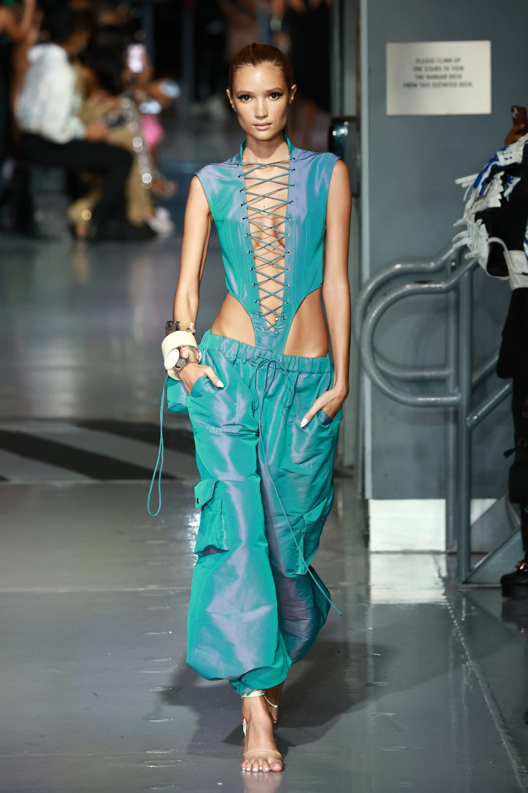 The evolution of the LaQuan Smith woman is always an interesting one to watch. She becomes more sophisticated, sexy, and confident with every collection. Equally interesting is the ways in which Smith plays on elements from a past collection in his new ones (as his Spring 2023 collection relates to his last, biker attributes, exposed hips, and fold-over mini skirts have each made a return with updates), while never neglecting to introduce something strikingly new for the brand. This time, it’s an exploration of LaQuan Smith as daytime wear by way of iridescent cargo pants, trousers primed for the office, and chiffon tops that can easily be taken into everyday settings with the addition of a silk cami underneath.