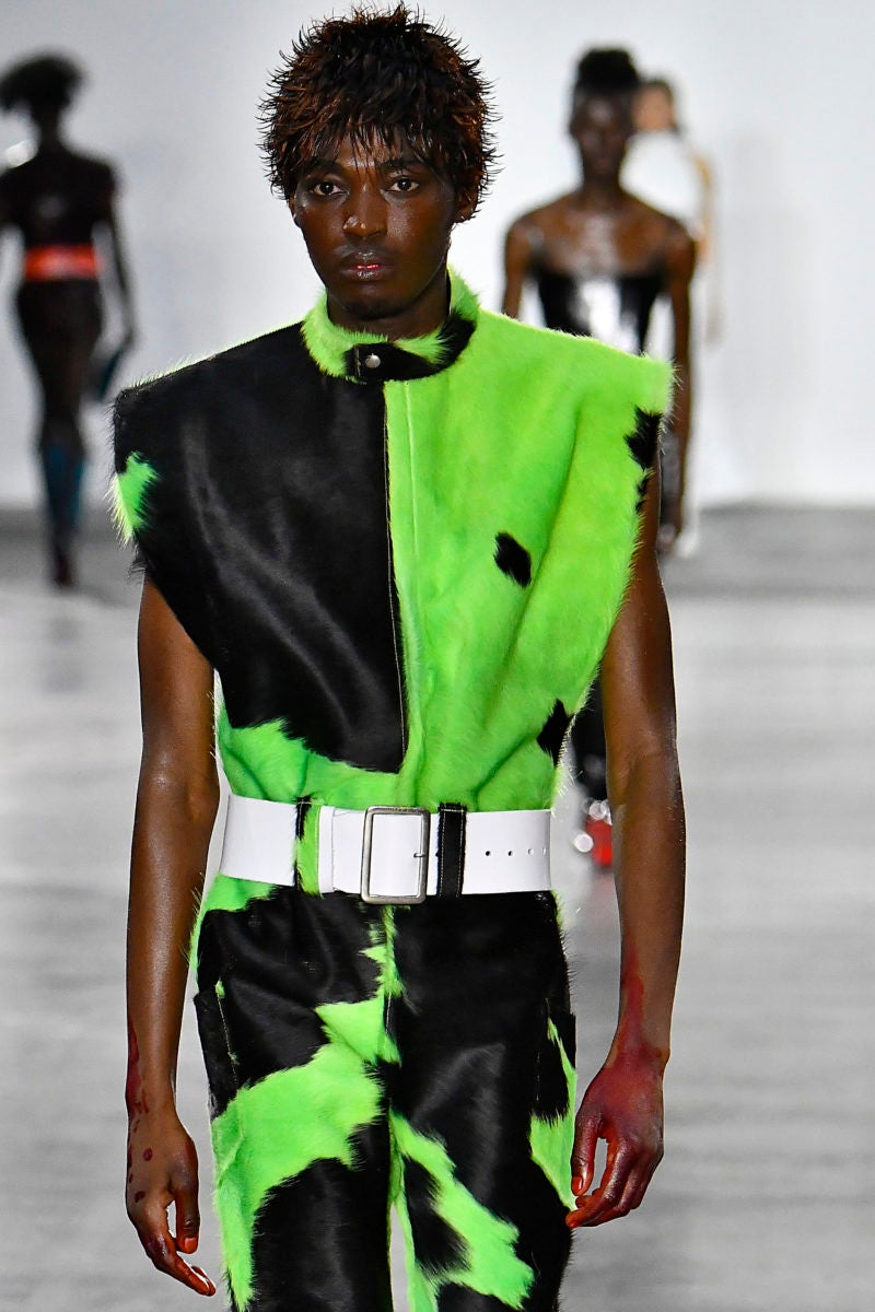 And while trends come and go, don’t be so quick to write this one off. At Spring 2020 Men’s Fashion Week, the bright color emerged on runways one again, which means next year will be no different. Newly popular London-based brand Mowalola featured a few cow print looks in lime green. Italian label Zegna showcased a light green pant in their look book and Feng Chen Wang used lime green accents to brighten her colllection.