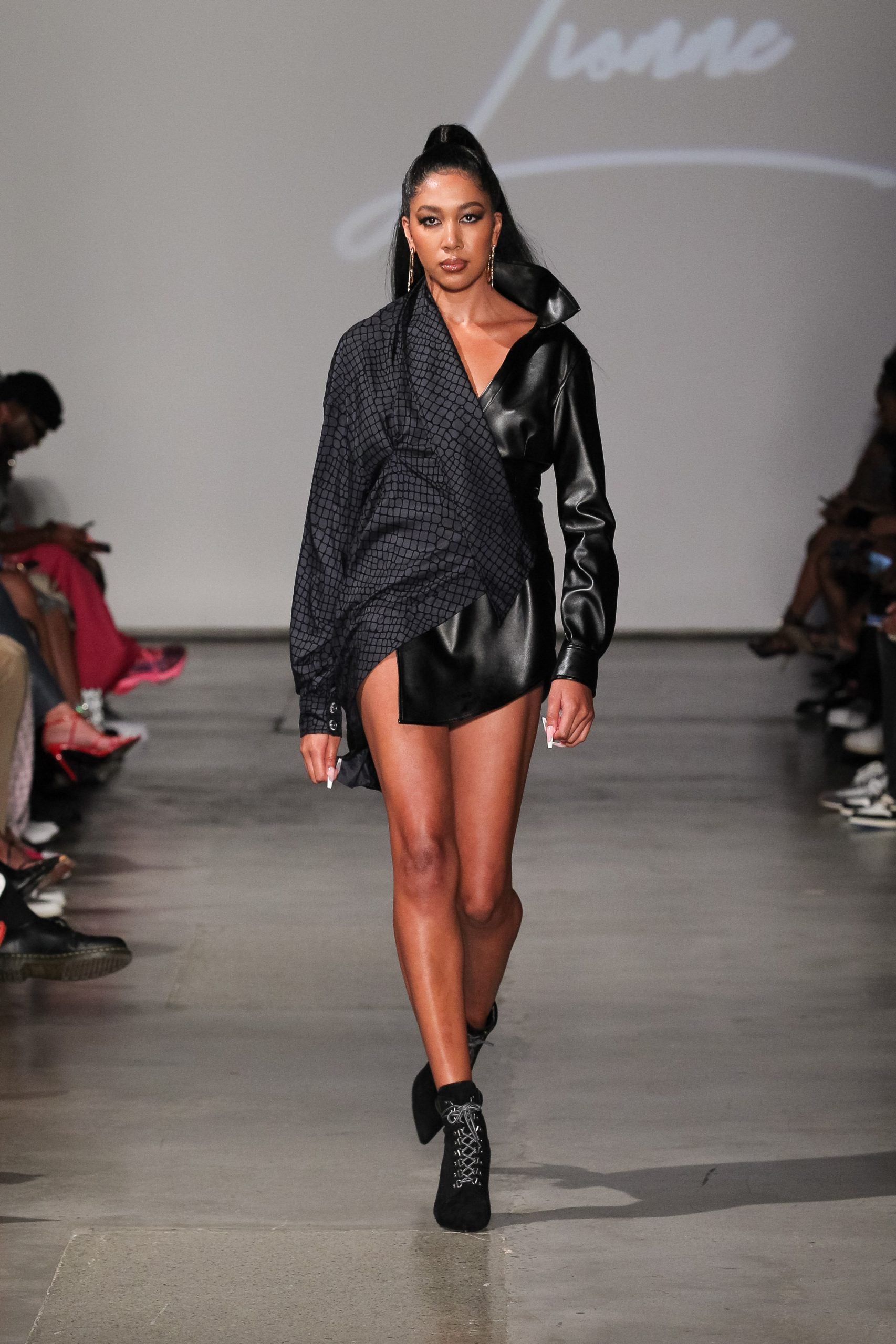Known to draw a star-studded crowd, celebrities such as Draya Michelle and Cassie sat in Lionne’s front row, wearing their favorites from the designer. And far as finales go, attendees were in for a personal love letter greater than even Fitzgerald could have imagined. First, a room-commanding deconstructed leather pant turned cut-out dress. Then, an unexpected marriage proposal closed the show, and the designer left her own runway engaged.