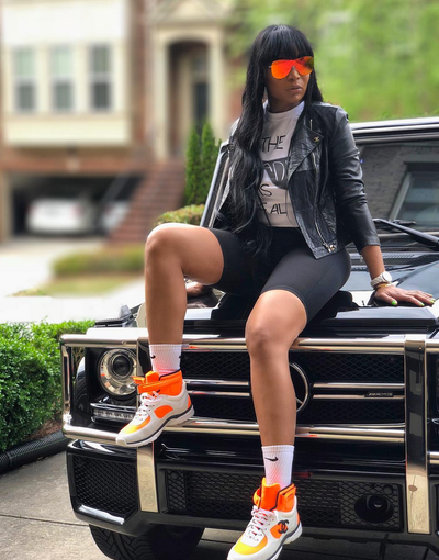 Marlo gives us ‘athleisure realness’ decked out in head-to-toe Chanel (sunglasses, leather jacket, watch and hi-top sneakers), paired with biker shorts, crew socks and a stylish tee.