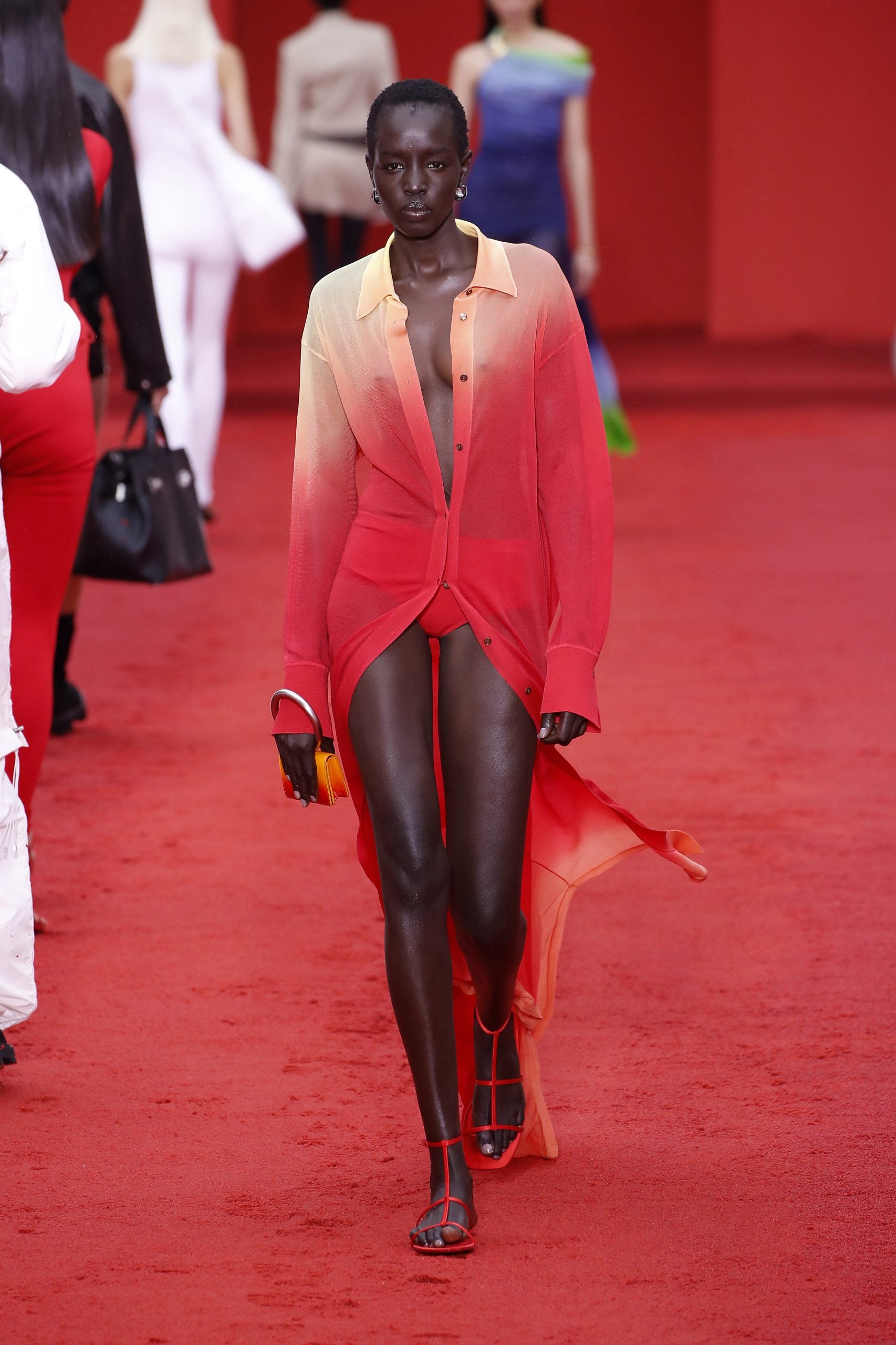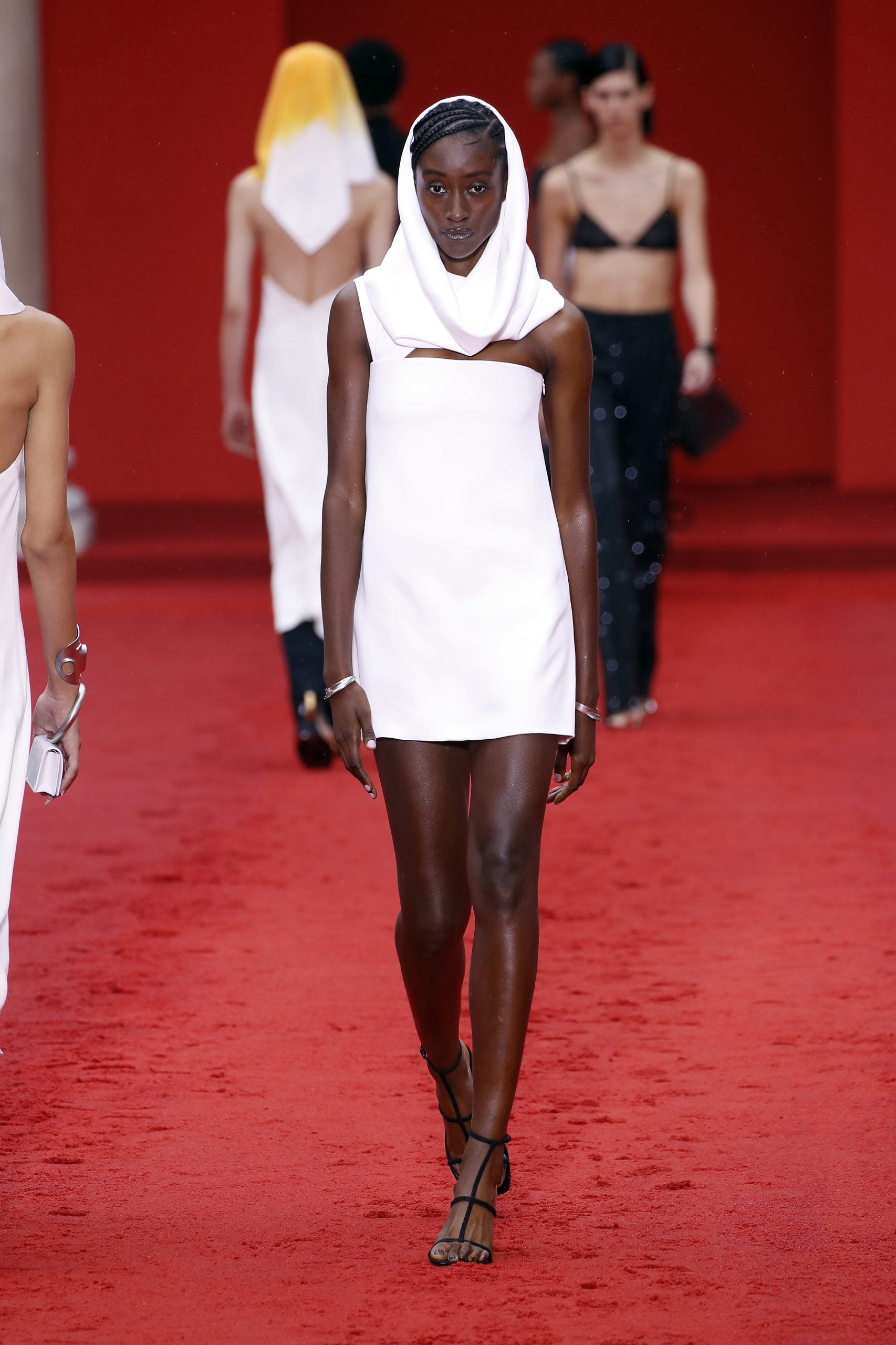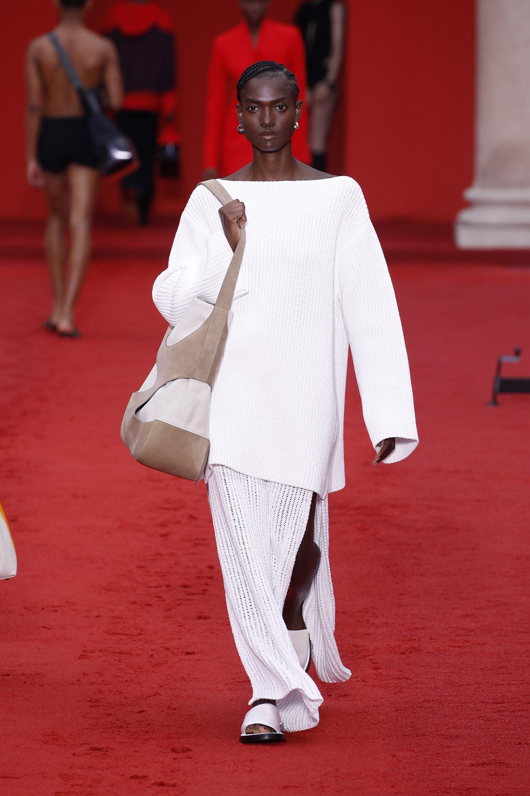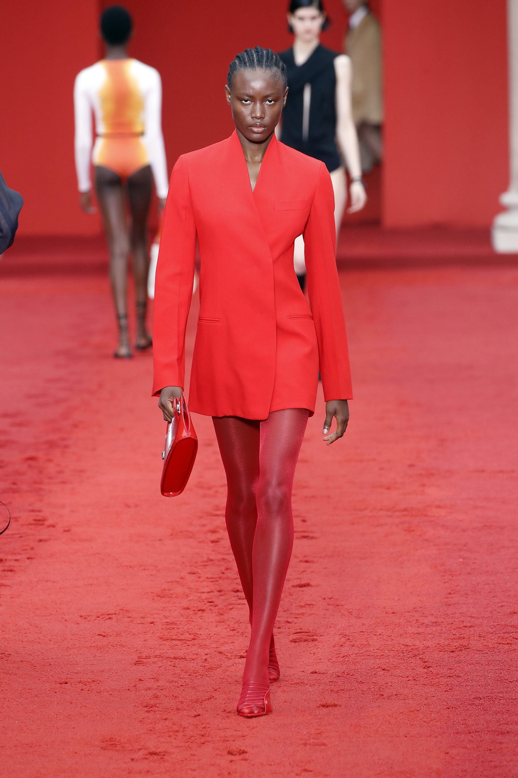 There’s a scene in the 1978 film classic adaptation, The Wiz, where the ever-so-chic citizens of Emerald City prance and dance in their finest garb as the wiz dictates the color of their ensembles. As the lyrics go, “And if you’re not seen red, then you shouldn’t be seen nowhere,”—and at Ferragamo SS23, apparently, that was the modus operandi. Red! With the graphic red sand, suede dresses, and bags, Davis sent a strong, clear message that this was a new era and that it would be bold, punchy, and fresh.