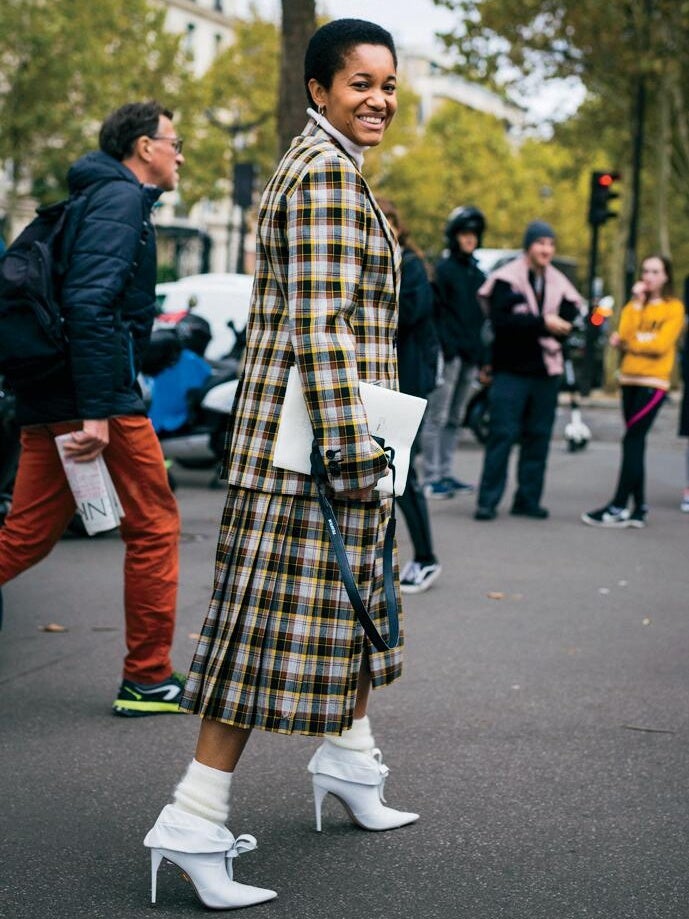 One trend that’s here to stay is the tailored power suit—a classic. Whether she’s sporting a vibrant pink blazer with leather shorts or donning a checkered two-piece, McPherson adds her own whimsical twist.