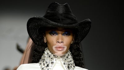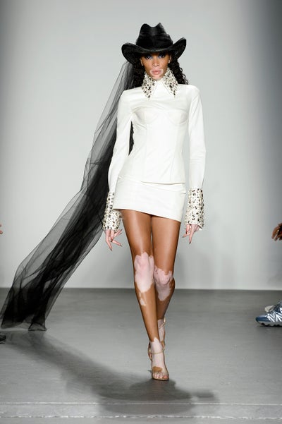 This afternoon Laquan Smith showcased his Spring/Summer 2020 collection at Pier 59, and he blended some of the most popular trends like latex, animal print, and western-inspired looks. The designer sent models down the runway in zebra print chaps, bedazzled cowboy hats, and see-through latex.