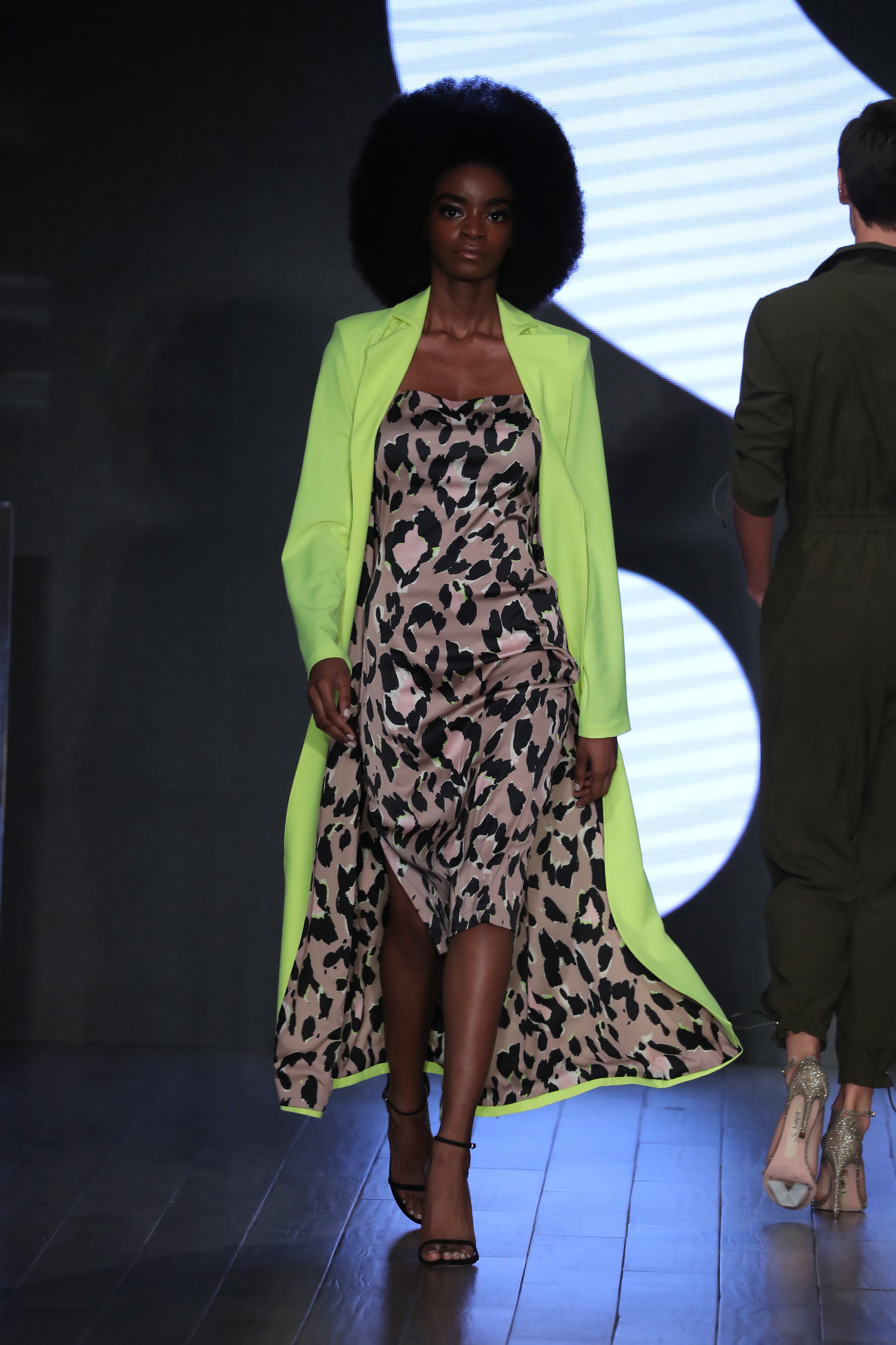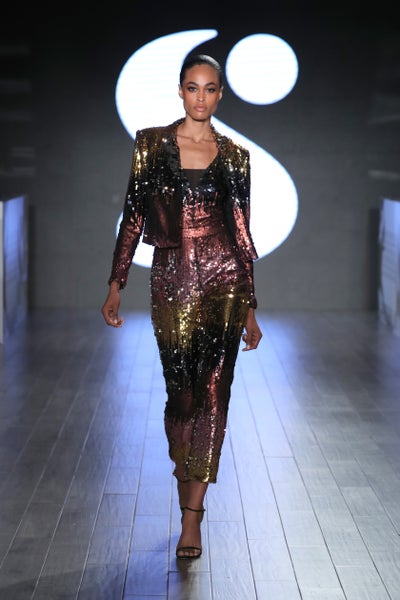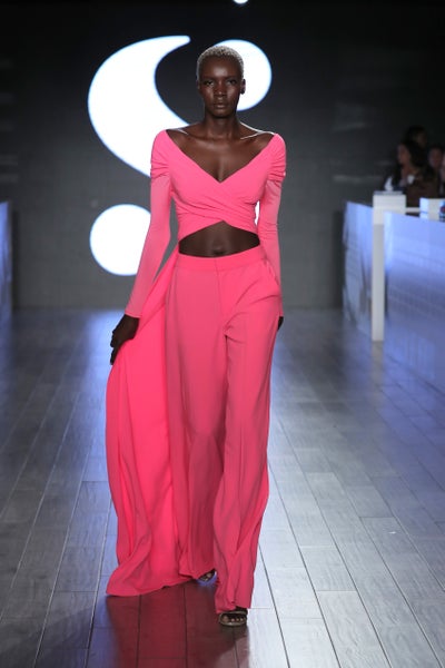 Usually, we can expect a casual nod when it comes to designs by Serena but today she unveiled a color-blocking collection with pops of animal print and shimmer. As far as what’s to come for spring, Williams is letting us know that lime green is here to stay. She sent models down the runway in bright slip dresses and capes elongating the neon trend for at least another season.
