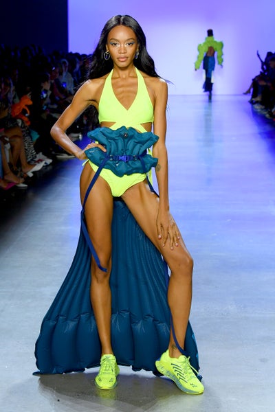 From expectant models to superstars in the making (like Leyna Bloom, featured in ESSENCE”s September issue), the Chromat runway was filled with major moments. Artist Rico Nasty topped things off, but bringing the crowd to its feet with an energetic closing performance. And you can bet lime green is not going out of style any time soon. Hues of bright neon colors were featured throughout.