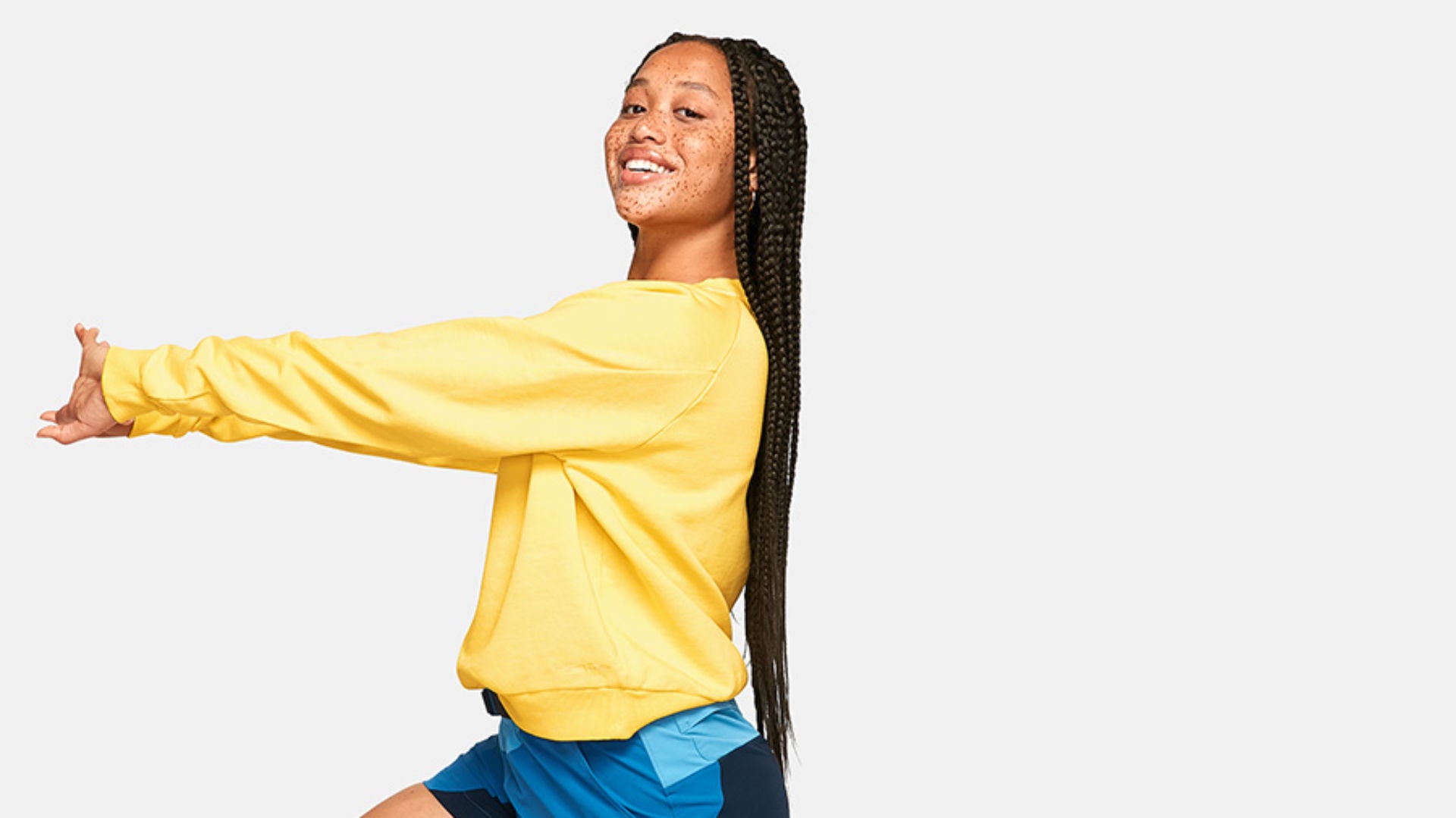The curved color-blocking designed is inspired by the natural landscapes throughout the world that have inspired the Outdoor Voices design language.