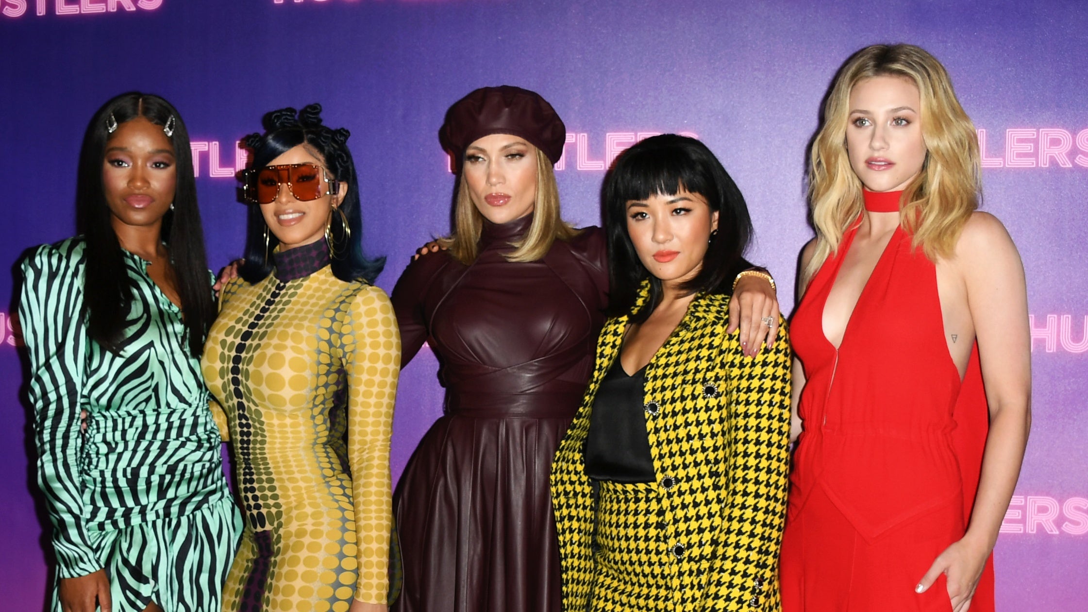Just like every big project, a few of the women have gotten together to start promoting. And what happens when you put a few fashion mavens together? A red carpet of showstopping looks. This past weekend the ladies hit a purple carpet for an early screening and we can’t get over these fashion moments. From Cardi B sporting a mini bag to J Lo rocking a monochromatic look, we can only hope the fashion in ‘”Hustlers” is this good.