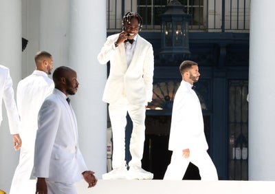 For starters, rather than showing in Paris, Jean-Raymond opted for Villa-Lewaro, the home of the late Madam C.J. Walker, to be the grounds to present his trailblazing collection. Originally slated for Thursday, the presentation was thwarted by severe thunderstorms, causing the Pyer Moss team to recreate the entire show from beginning to end (cookout included) for Saturday. It’s important to note, however, that while the rain may have dampened Thursday’s plans, the enthusiasm that swept the Irvington, NY grounds today was a reminder not only of the resilience of Black people, but also the profound impact that Jean-Raymond’s creativity has had on the culture.