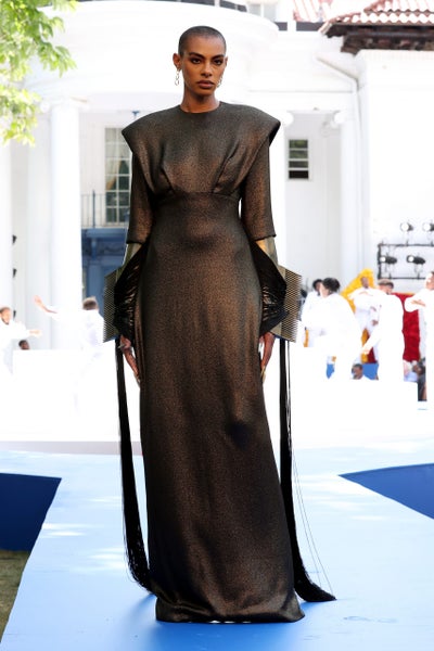Before the fashions were revealed, the dynamic Elaine Brown, former Chairman of the Black Panther Party, delivered a powerful message about liberation — setting the tone for what would be a fashion show whose garments were visual representations of Black excellence. Every single couture look served as a take on a Black invention — from the horseshoe, to the mop, and of course, the hot comb. A true redefinition of couture, Saturday, like everything Jean-Raymond does, was crafted with thoughtfulness, unsurpassed creativity, and Black people at the forefront.