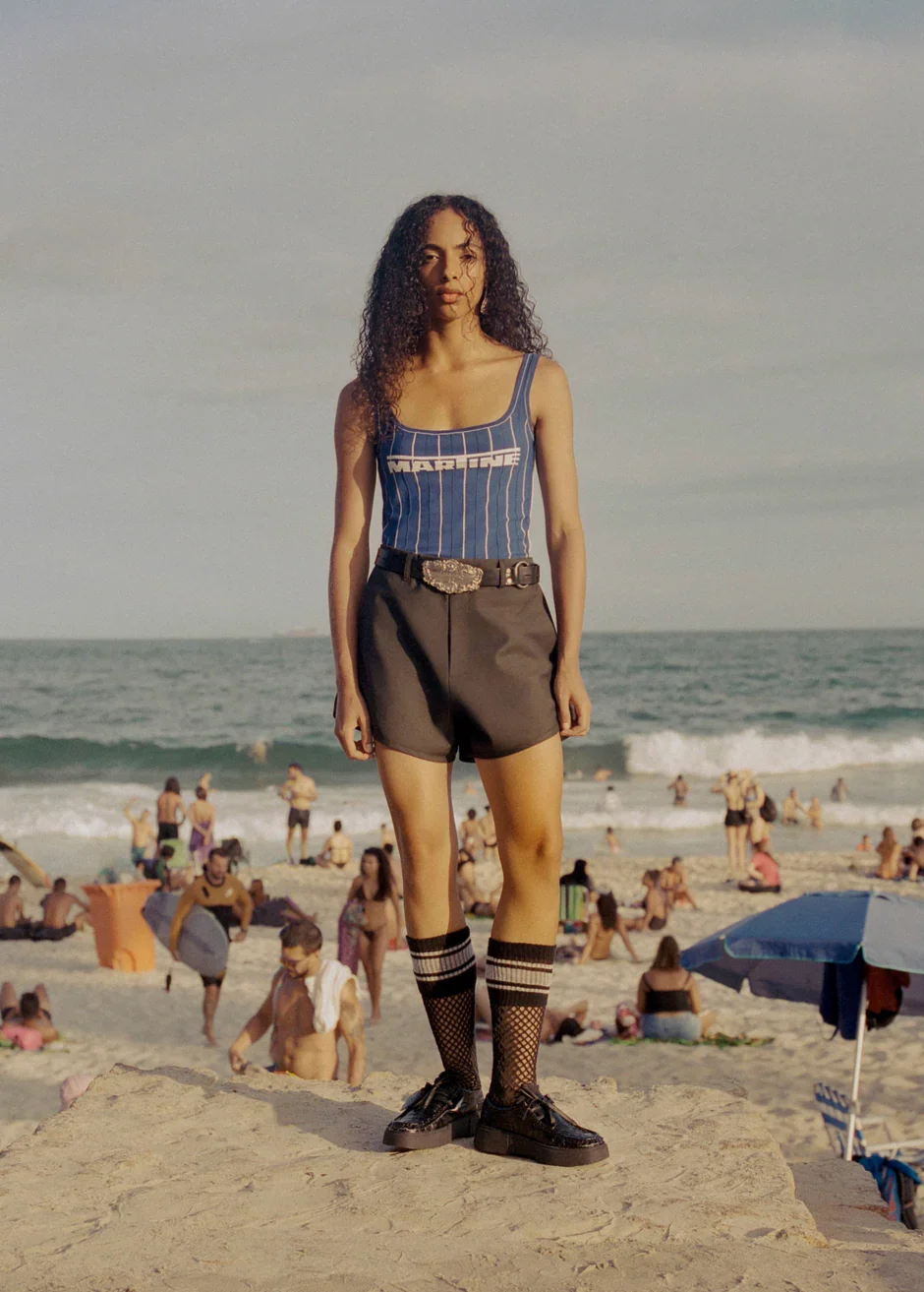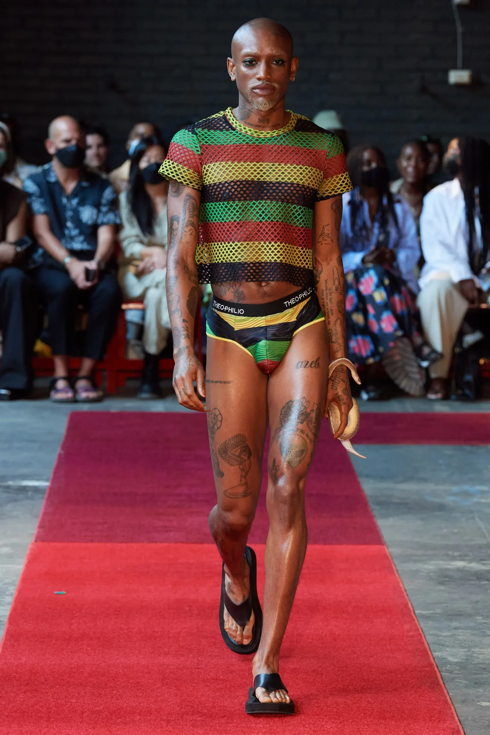 Fast forward to today’s collections, and that blueprint is alive and well. And even more luxurious. Wales Bonner, with her tender nods to diasporic identity, drapes reggae’s roots across knitted crochet tops, loose denim, and sun-bleached palettes that channel a day party in Negril. Theophilio specifically, is directly influenced by Edvin’s Jamaican upbringing. There’s a reason crochet runs so deep. Jamaica’s humid climate and island craftsmanship made airy knits and openwork patterns a natural choice, while crochet tams and mesh tops became statements of both style and freedom. Martine Rose, the master of subculture, remixes Clarks and crisp tailoring with a distinctly reggae swagger. Clarks Originals have their own lore in Jamaican style. Rude boys made Clarks their subtle flex, wearing fresh-from-England shoes, but with homegrown style.