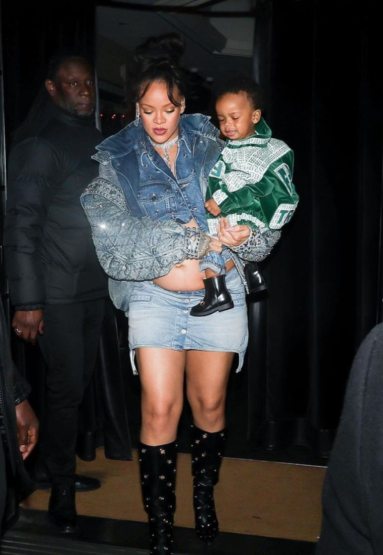 One thing that will never seem to go out of style is a good denim on denim look. The Canadian tuxedo is a staple for this fashion-forward family. With A$AP seen sporting the look twice in his paparazzi-inspired Bottega Venetta campaign and Rihanna has even been spotted in an all denim ensemble from time to time. Baby RZA, nestled in a light wash denim jacket and jeans, epitomized chic comfort. Even in a slumber, his black sneakers complement the denim on denim look, a testament to the impeccable taste inherited from his parents.