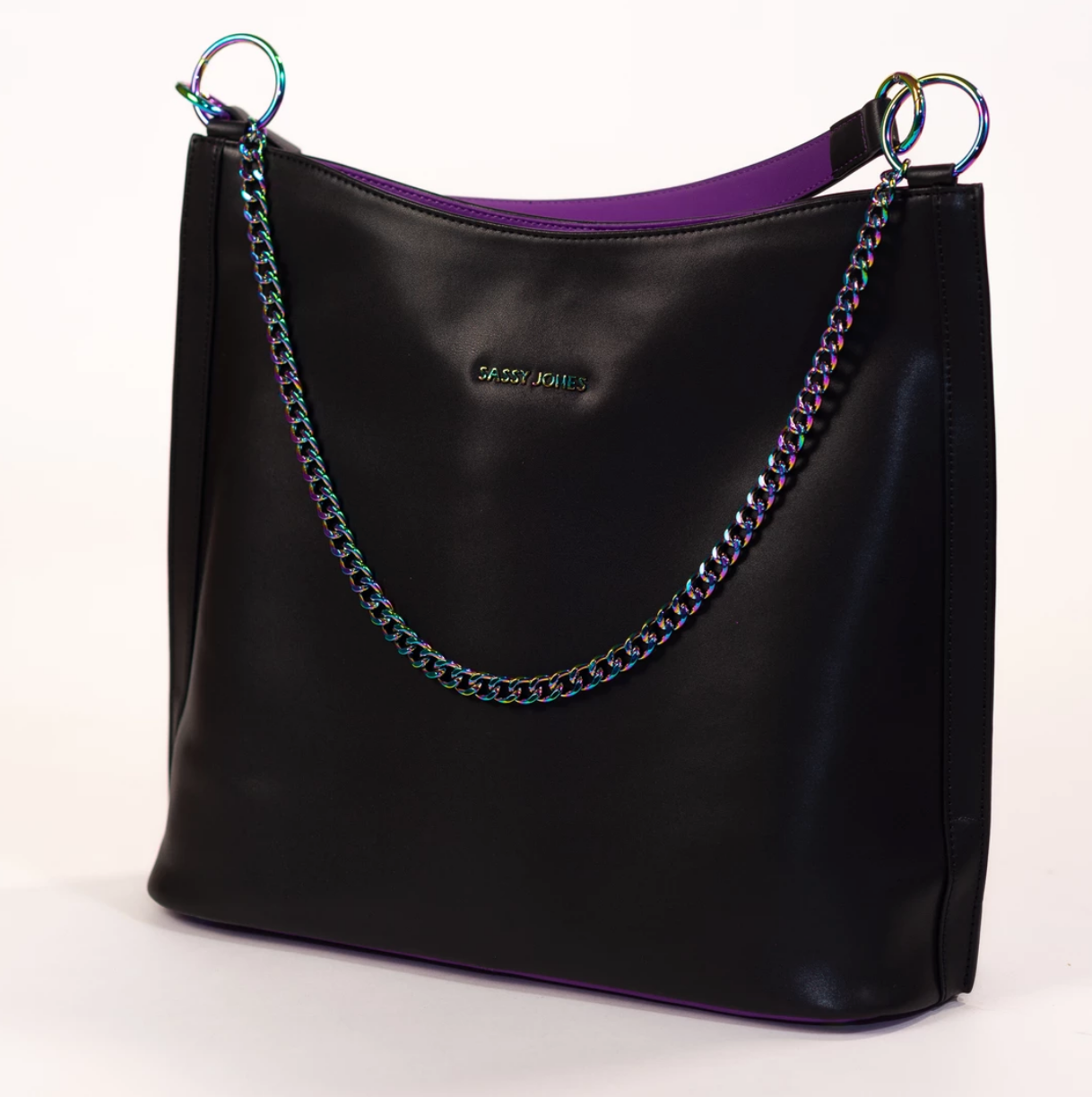 This week I’m gushing over this fabulous black tote with iridescent hardware by Sassy Jones.