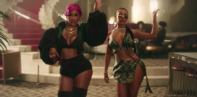 The video then quickly transitions into both mavens wearing matching tweed looks inspired by Chanel’s vintage style, Javar details on his Instagram page. Following the opening scenes, Saweetie and Doja Cat both stun in a Dapper Dan x Gucci look — a moment Javar says is his favorite.
