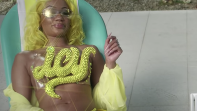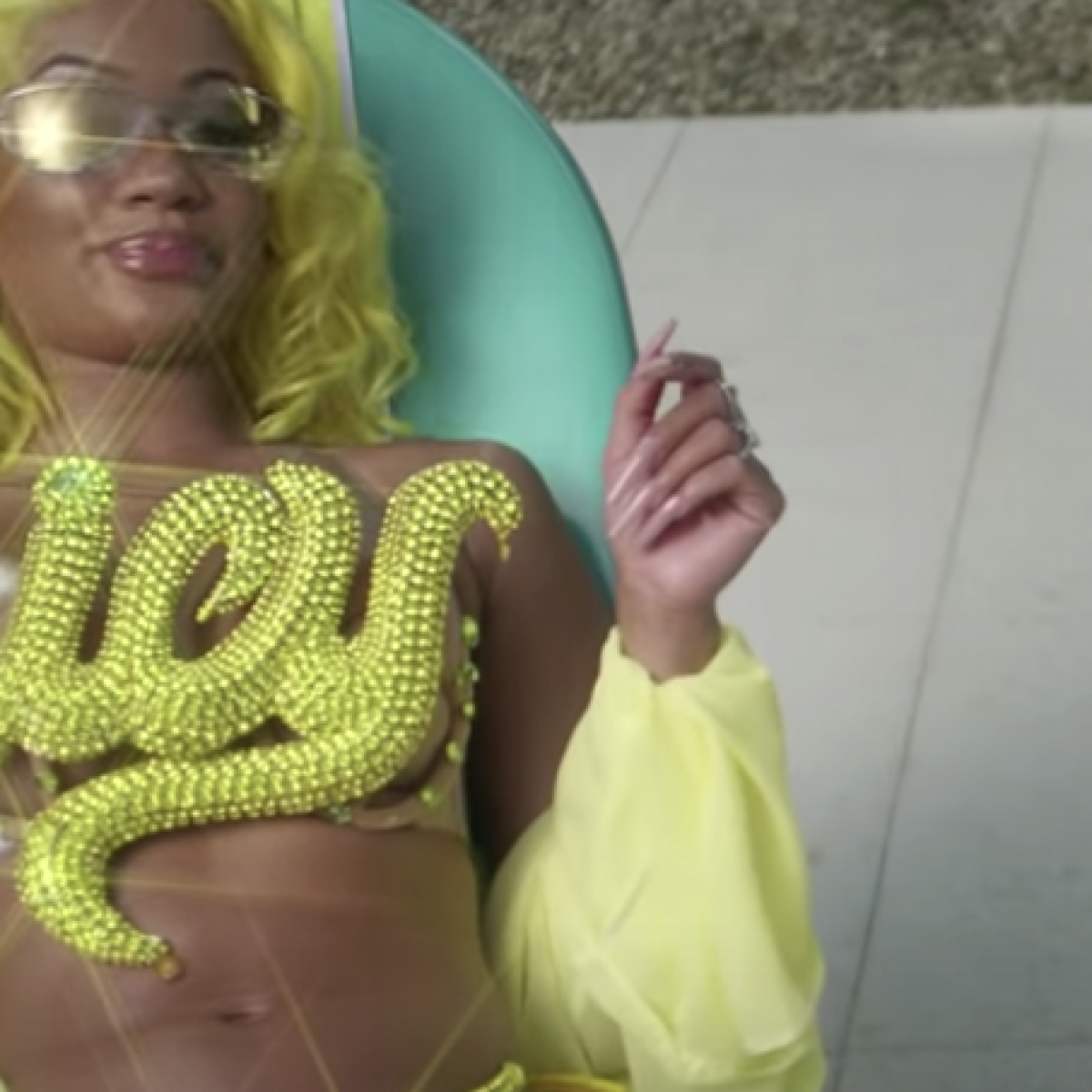 The “Bestfriend” video celebrates two young enthusiastic friends who are living in the moment. From twerking on an iced-out Tesla to sitting poolside to sporting identical looks, these two epitomize everything friendship is glamorized to be. The opening scene emerges with Saweetie sporting a custom top with her signature “Icy” saying printed across the front.