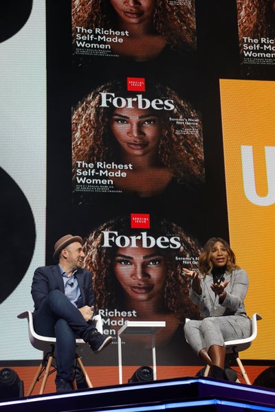 Yesterday afternoon, Forbes opened the biggest theatre room at Masonic Temple (previously where the concert was Monday night) for a very special guest, Serena Williams. While her chat was originally scheduled for 1:30 p.m., Williams was stuck in London and made it to the venue around 5:45 p.m. “I really wanted to be here. I didn’t want to miss this,” the Grand Slam champ expressed.