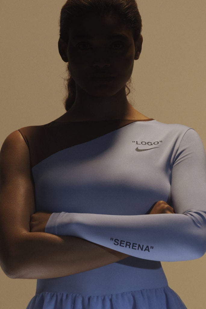“With Serena, we have one of our generation’s most powerful, inspiring athletes as the muse,” says Abloh. “I was trying to embody her spirit and bring something compelling and fresh to tennis… the dress is feminine, but combines her aggression.”