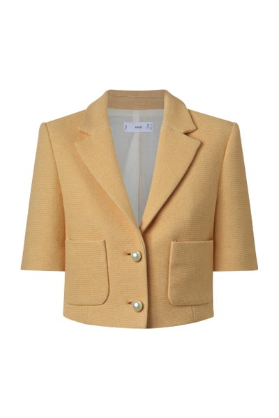 Not into suits? This cropped blazer is decorated with pearl buttons and is bound to change your mind.