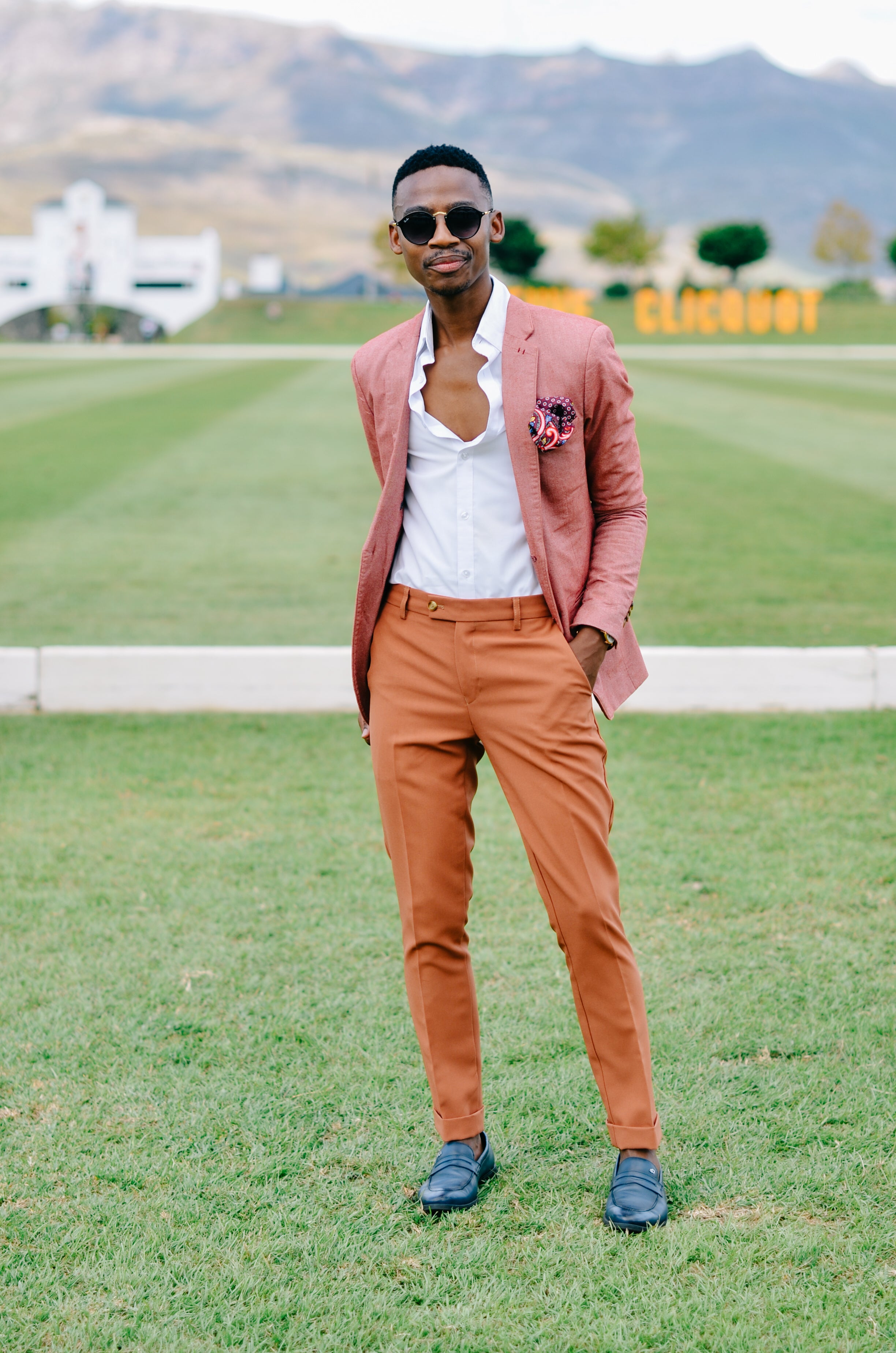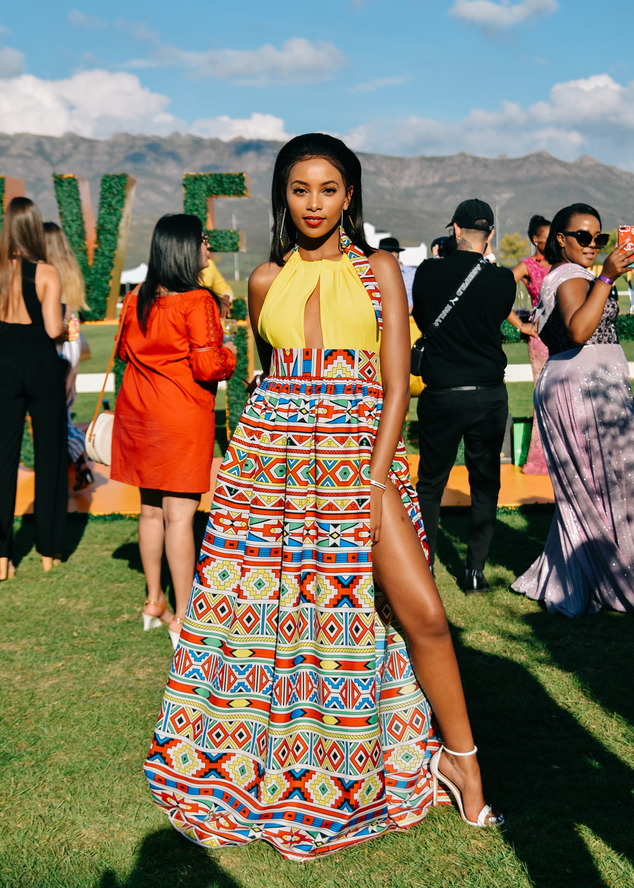 Both men and women were dressed in vibrant hues, imaginative hats and bold patterns—topped with a well-placed flute of champagne while strolling through the Val de Vie wineland estate in South Africa.