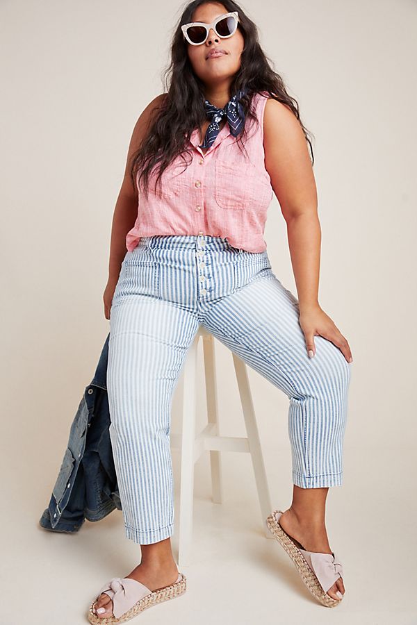 Pilcro High-Rise Railroad-Striped Jeans, $130