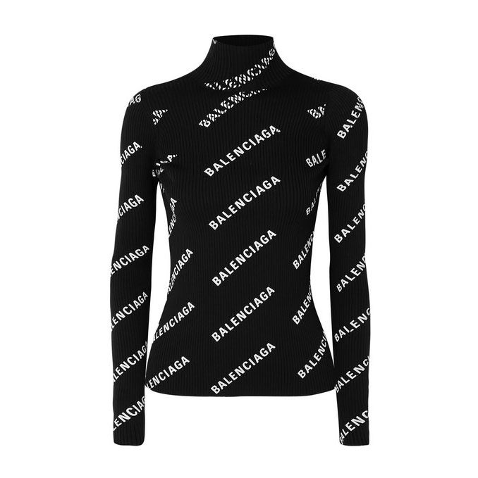 Open-Back Printed Ribbed-Knit Turtleneck Sweater