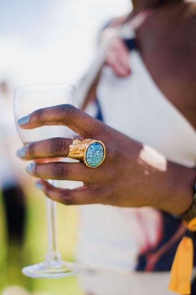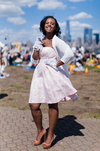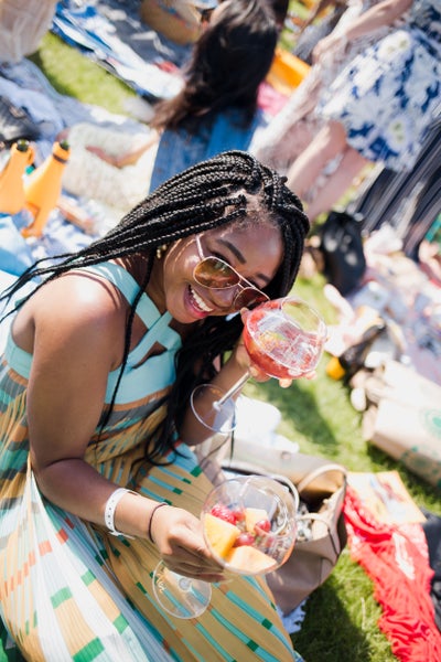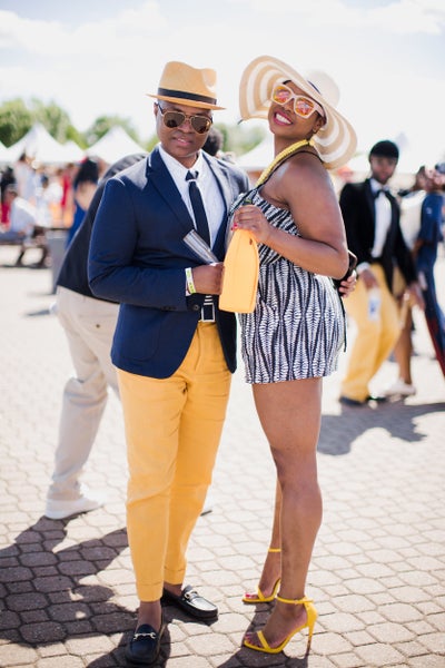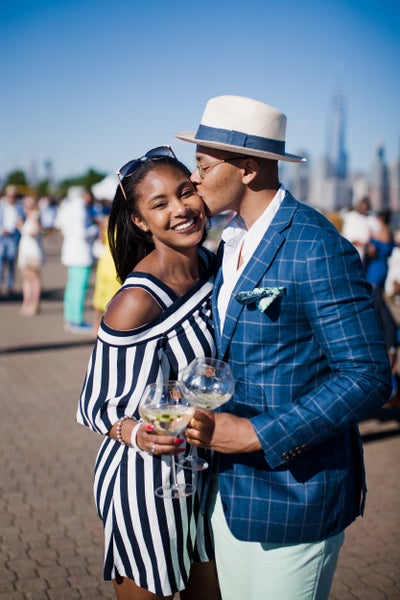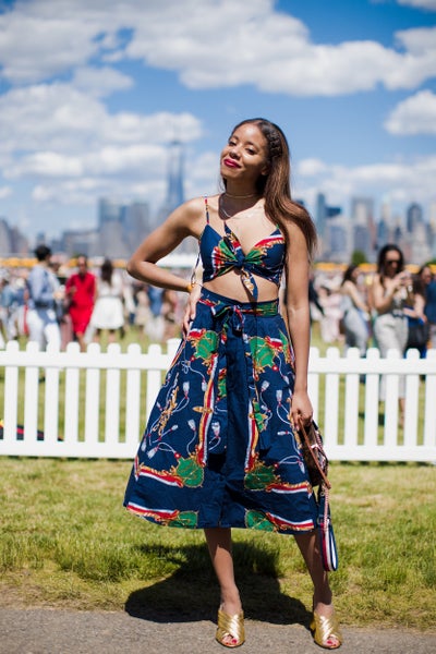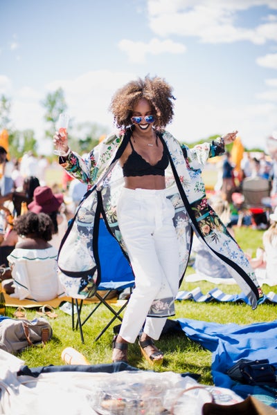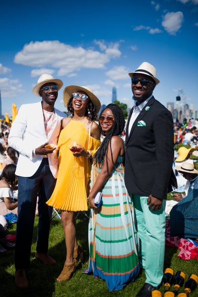 A view of the green grounds filled with fashionable guests during the Polo Classic in Liberty State Park, New Jersey.