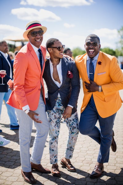 Ok sir, we’re digging the white linen blazer and a pop of color underneath!