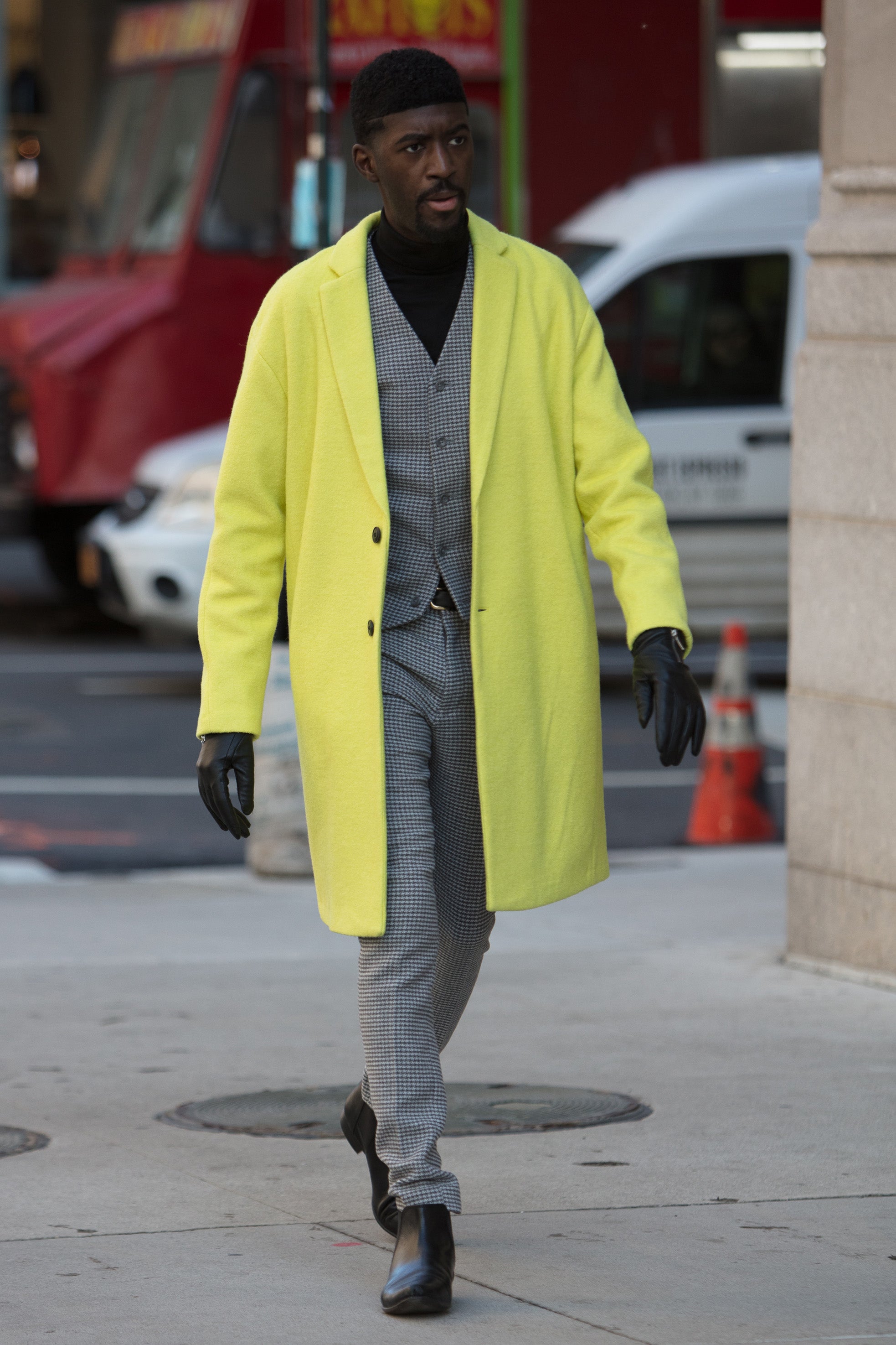 A stylish guest is spotted on the streets of NYC during the New York Fashion Week.