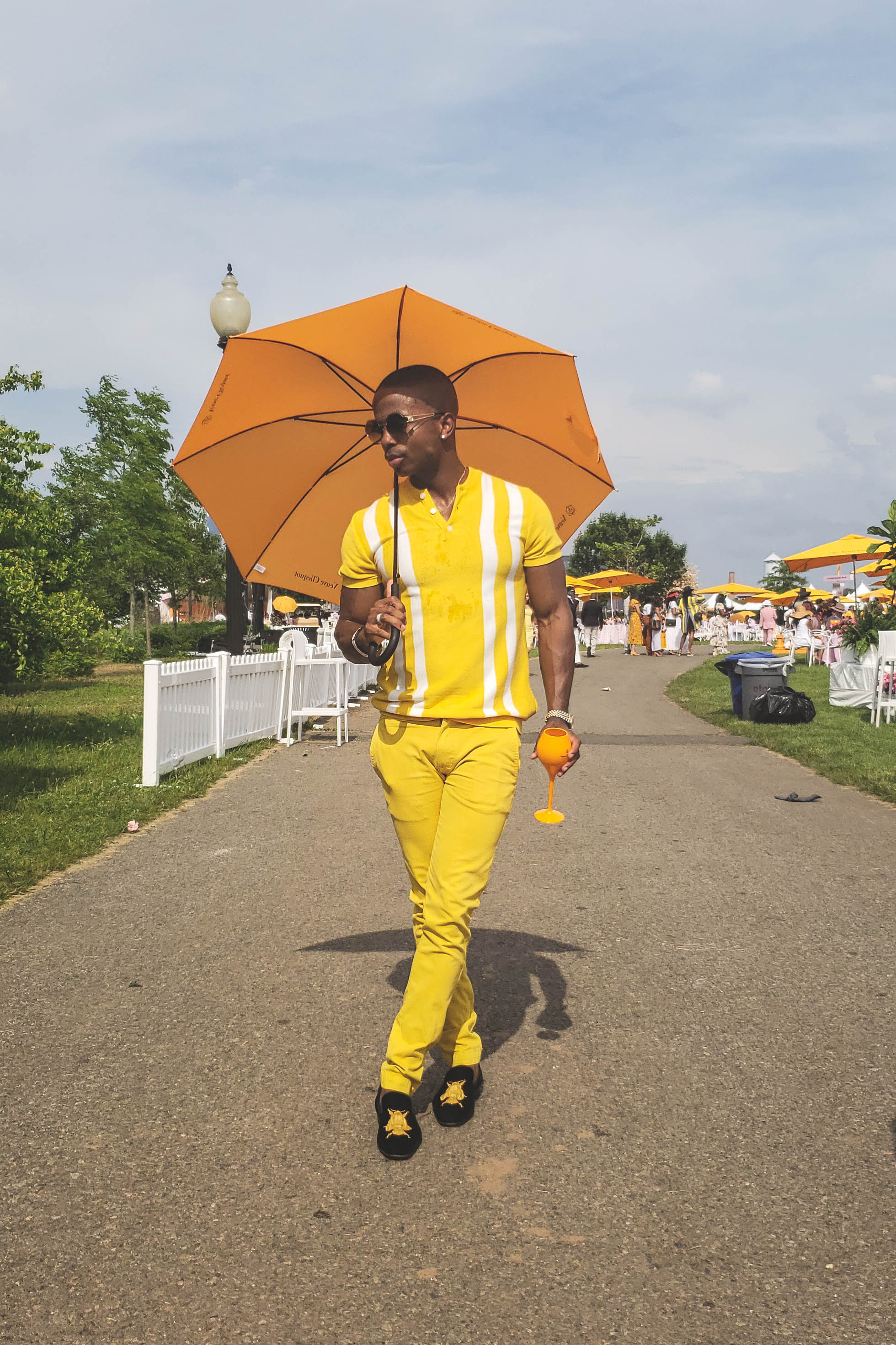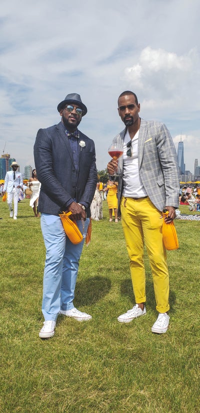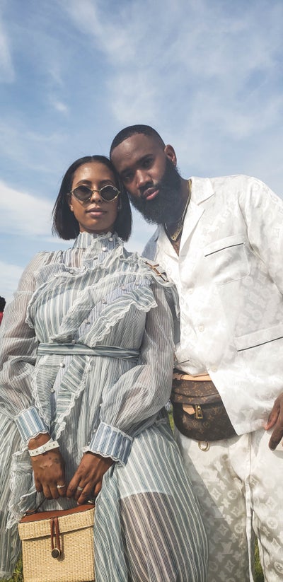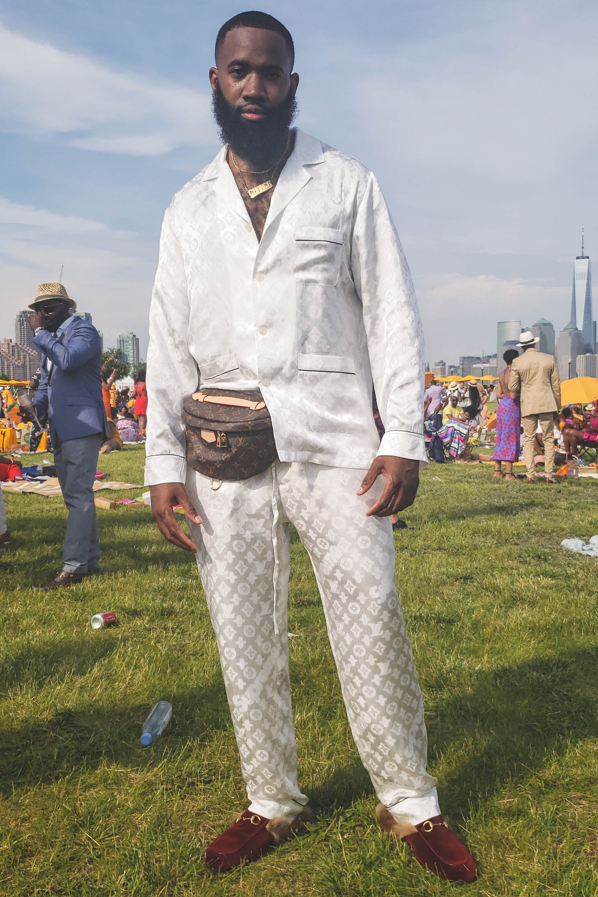 Jersey City native, Chance Pierre and D.C. resident, Lundon Kinard became fast friends at this year’s VC Polo Classic. Pierre wore a white Louis Vuitton X Supreme pajama set with Gucci shoes. Kinard went with a vintage look custom designed by friend “Jabi.”
