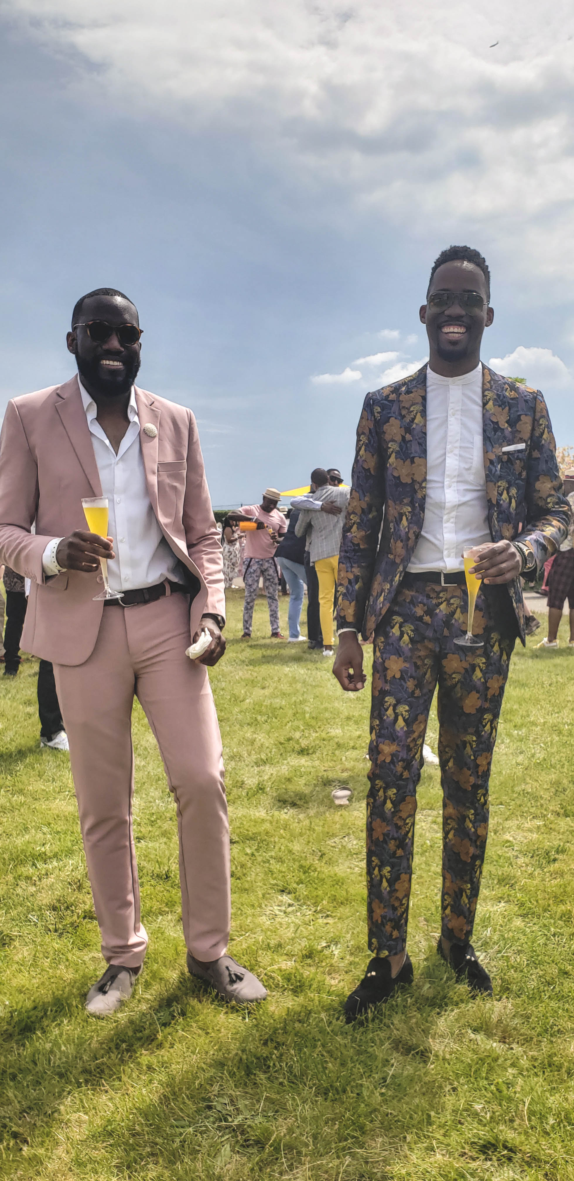 Friends Ilbert Sanchez, Jean Gilbert Francillon, Ldell Young, Sunday Bamgbose came in “all Wakanda everything” for this year’s polo classic. The men work together on men’s fashion line Garcon Couture based in Miami and New York City, and are wearing originals from that line.