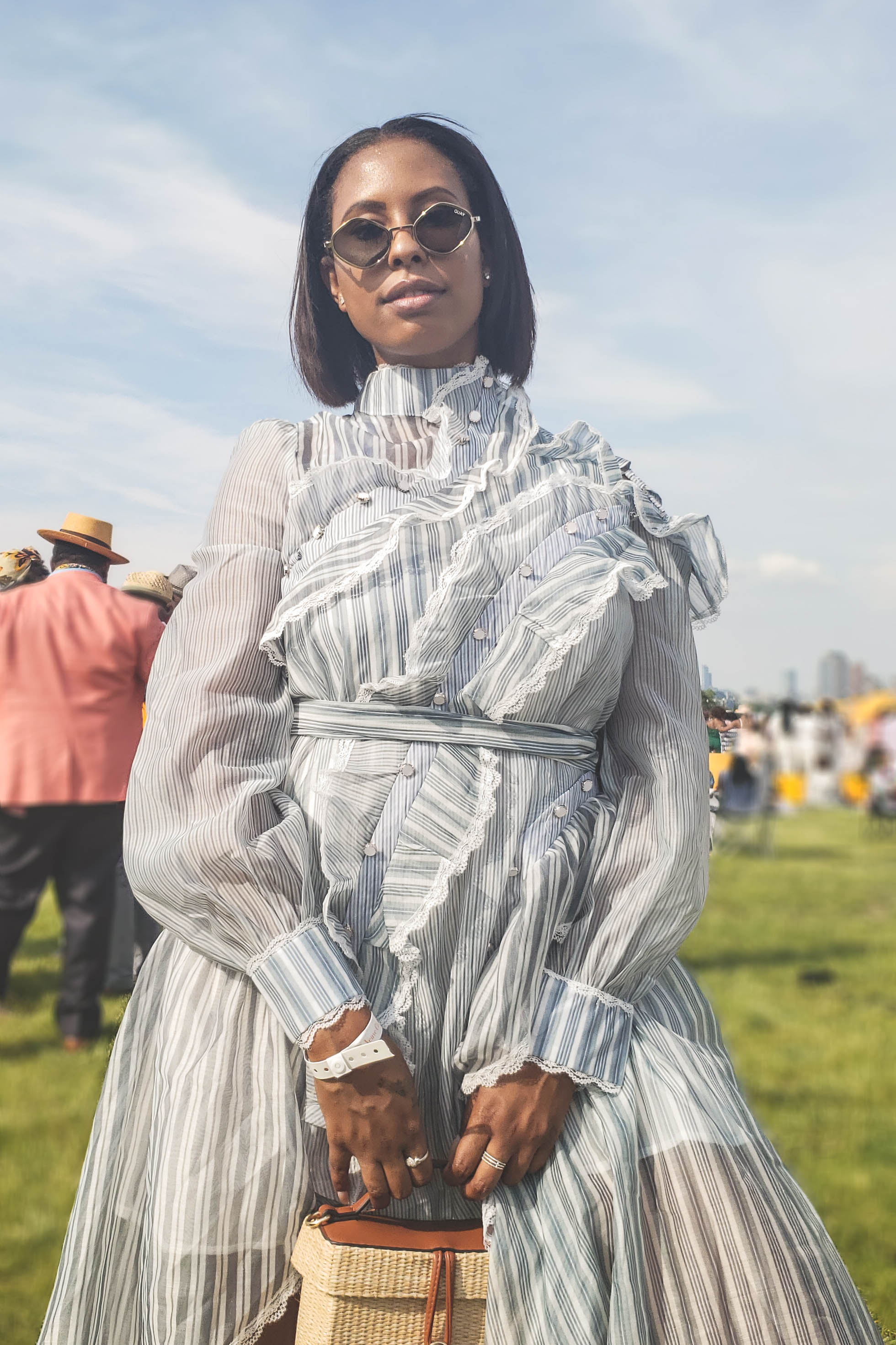 Anasthasia Jones brought vintage vibes all the way from Houston TX for this year’s polo classic. Jones wore a custom design by her friend and took her hair inspo from Janelle Monae.