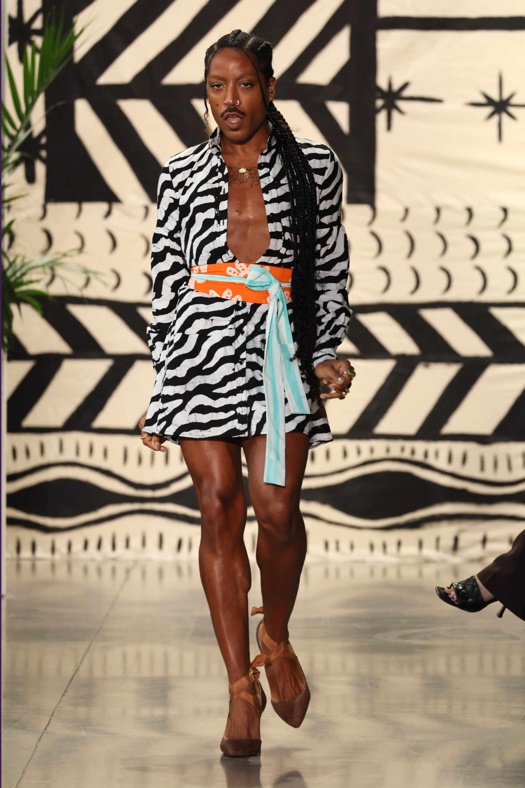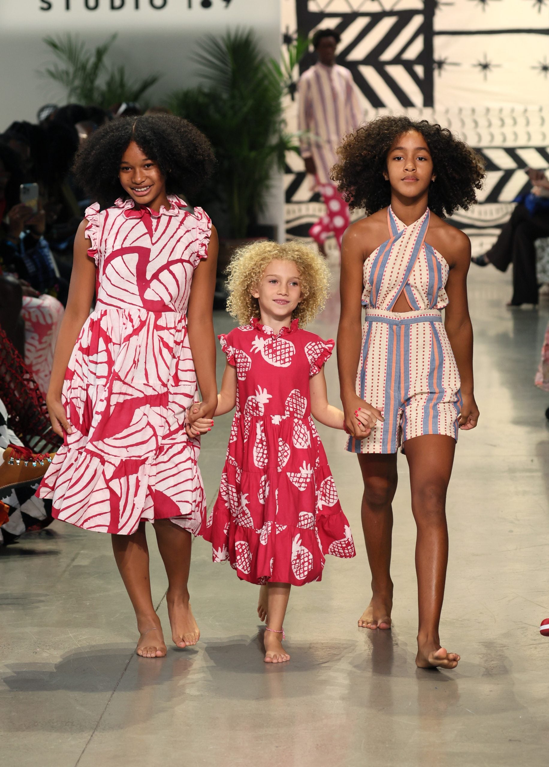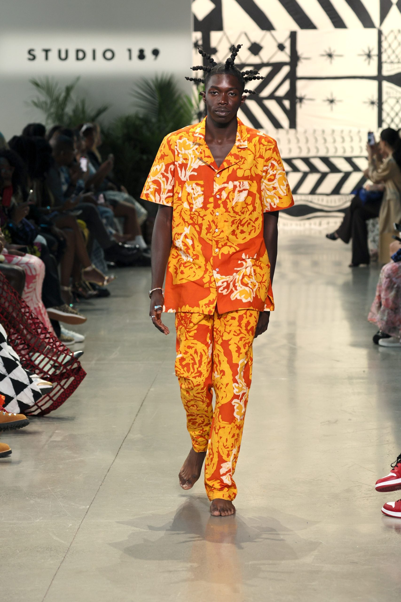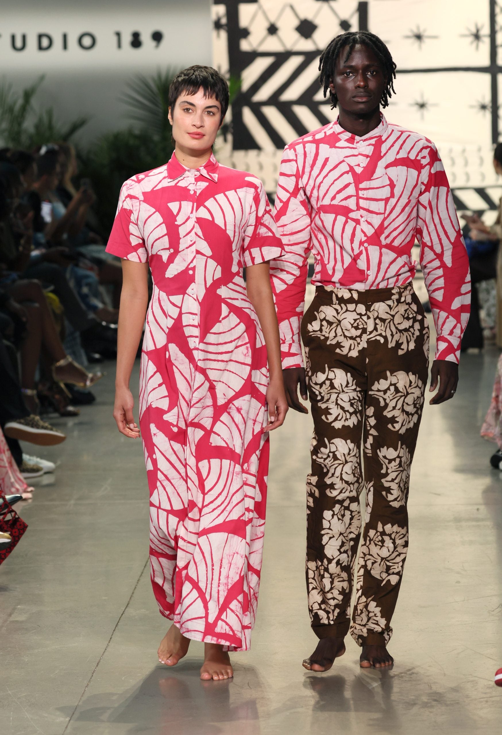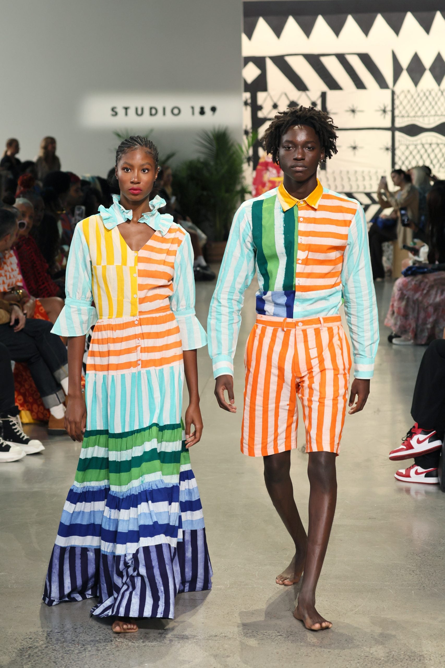 Though Studio 189 seems to have found a home in New York Fashion Week (Erwiah is of Ghana and Côte d’Ivoire descent on her mother’s paternal side, while Dawson’s lineage is Afro-Cuban and Puerto Rican, but bother were ultimately born in the city), the brand, whose garments are created sustainably by artisans in Ghana, shows no signs of a desire to create pieces that follow Western rules. Through and through, across over 60 womenswear, menswear, and children’s looks, each handwoven thread Studio 189 showcases is an ode to home — (yet, with a notably diverse cast, it feels more like whatever is home to you).