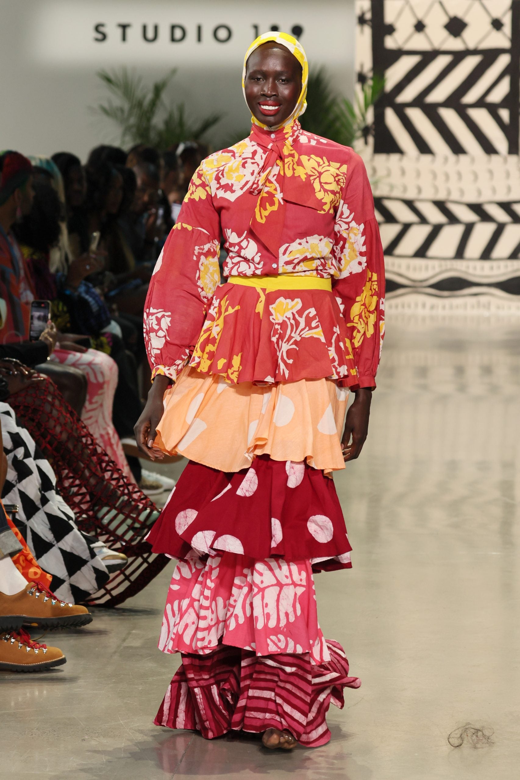 This season, reimagined form is yet again given to techniques such as hand batik and basket weaving, stand-out looks including striped kaftans; a tiered, multi-colored maxi skirt; an artful patchwork skirt set, and in a nutshell, pattern after alluring pattern. As always, volume is also the name of the game for the brand’s Spring 2023 offering. After a patchwork halter bralette, maxi skirt combination for the finale look, the show closed out with another mood-boosting performance.