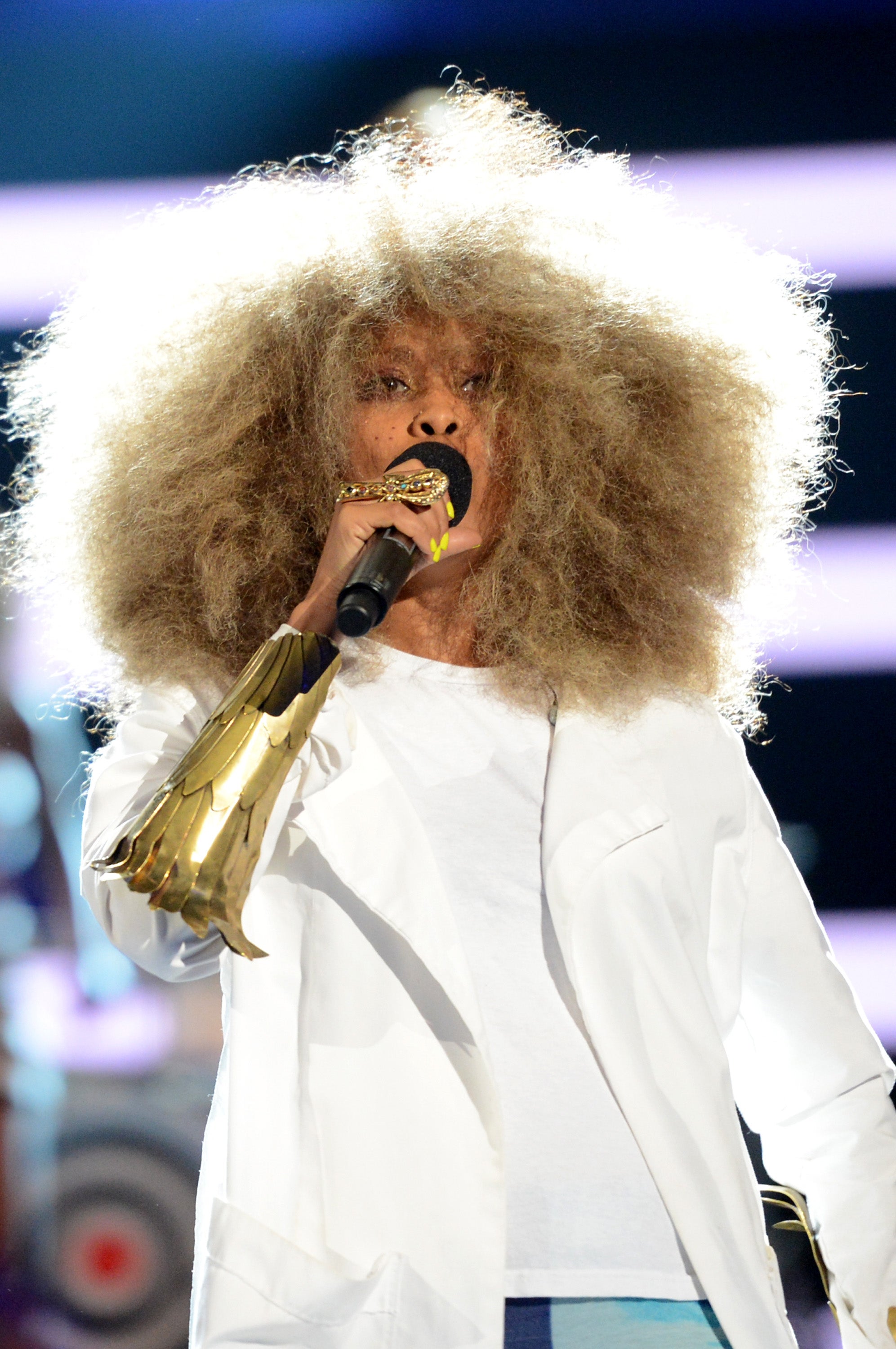 At the 2013 Billboard Music Awards, Badu was heaven sent in a white wrap coat, tan suede thigh-highs, gilded wings and arm cuffs. Her halo? A gorgeous golden bob.