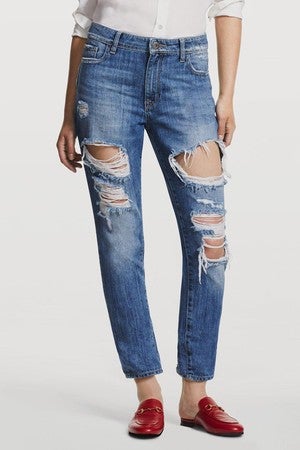 This jean is two-tone with a side cut that is easy to wear. Pair with ankle booties and you’ve got a perfect fall look.