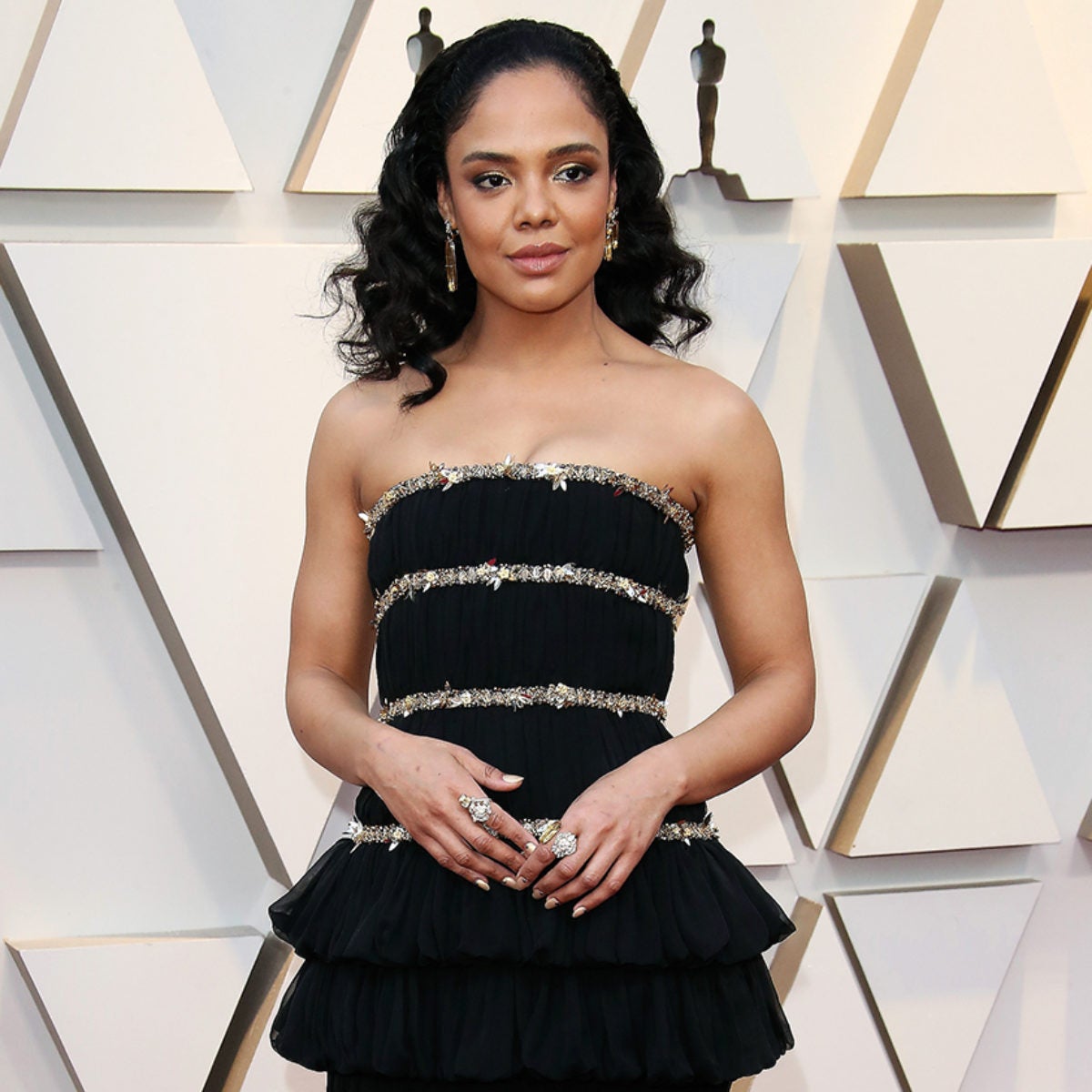 Tessa was the lead of the Men in Black reboot. We wanted a custom red-carpet showstopper that would be as stellar as the iconic franchise. We decided to collaborate with Rodarte on the astral design. The ruffled gown and moon-shaped Judith Leiber clutch mirrored the film’s sci-fi motif while complementing Tessa’s quirky personality.