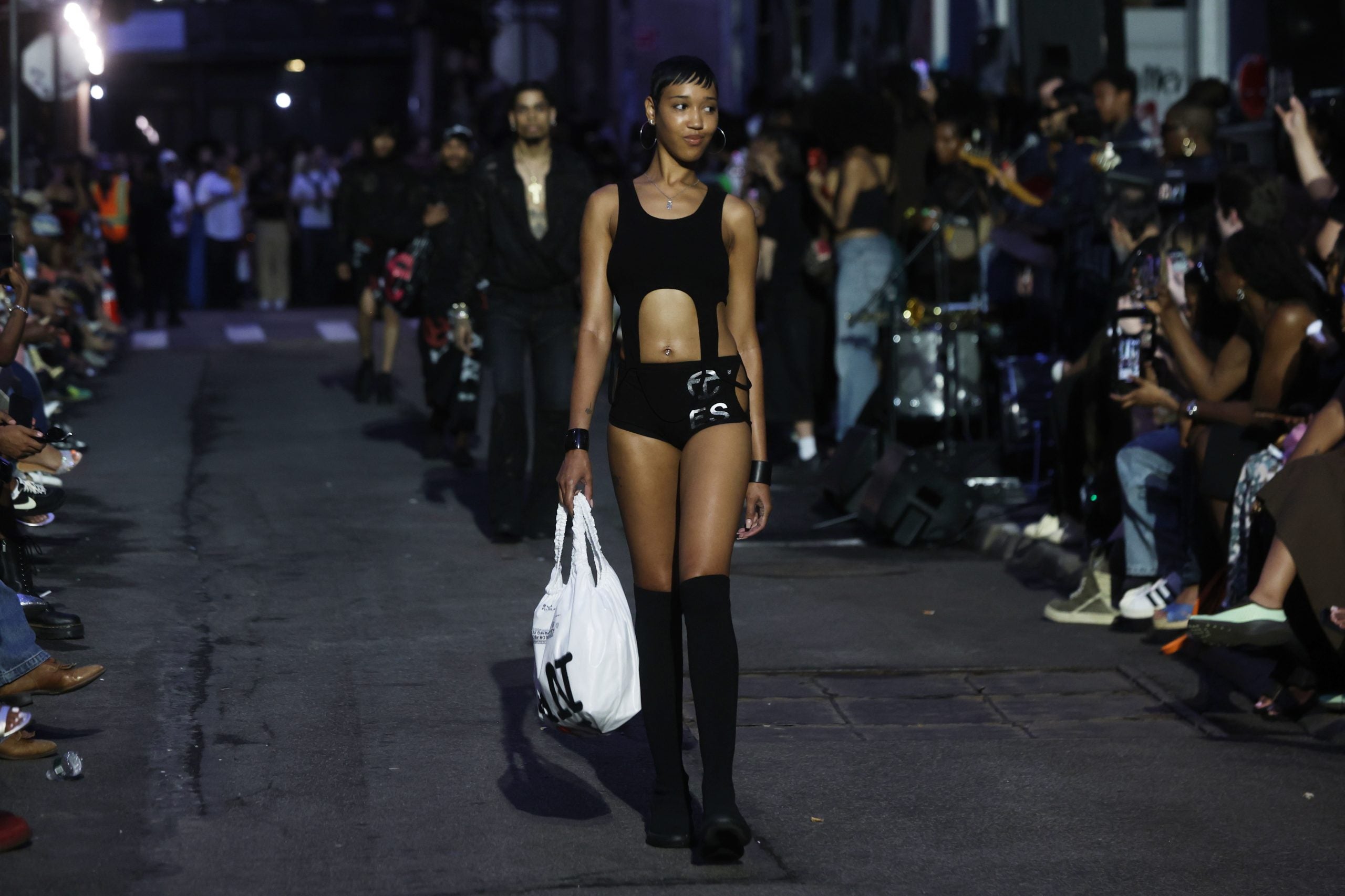 Yesterday evening, designer Telfar Clemens hosted a vibrant runway show after two decades of disrupting the fashion industry. Is there a better way to celebrate than to invite guests and close friends of the brand to Chinatown for a lively affair? Clemens did just that. Music rang loudly through Cortlandt Alley, which set the tone for what felt like a block party. These sentiments are on brand for a company that has thrived due to the designer’s ability to inject a vivacious energy into the often gatekept and stuffy fashion industry. Over a hundred guests, including creative savants Solange Knowles, Kelela, and a crop of editors from notable publications, were in attendance.