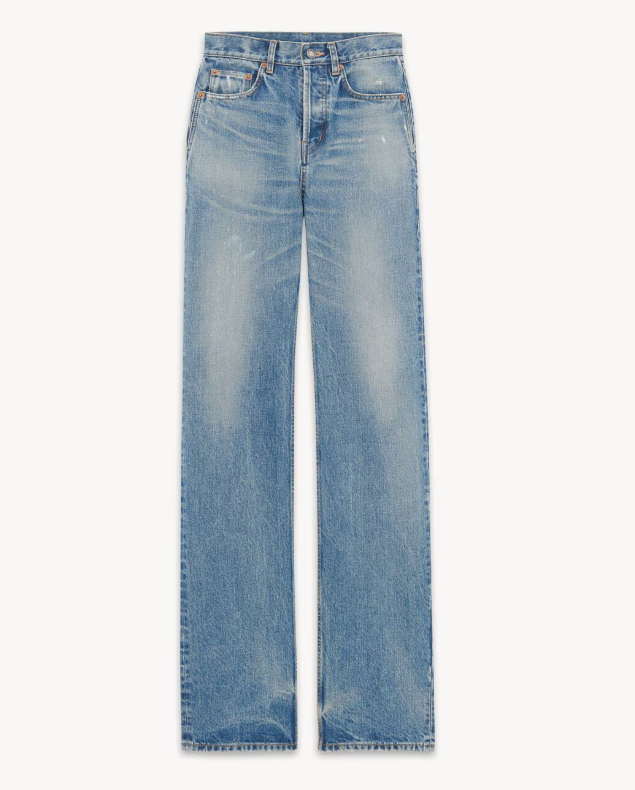 Saint Laurent Long Straight Jeans As a tall woman, she knows not all jeans are made for her. A strong pair with a long hemline is essential, preferably with a heavyweight finish and a flawless wash. Her go-to statement pair comes from Saint Laurent and is on the pricier side, but worth it.