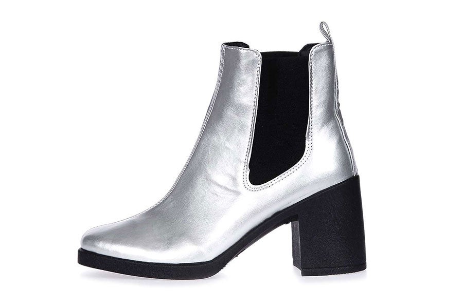 This metallic bootie is the perfect statement shoe to pair with your skinnies. $60, topshop.com.