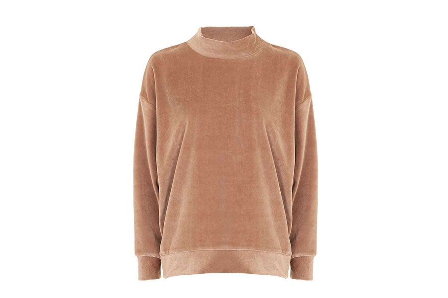 This sweatshirt is upgrade from your heather grey pull over. This plush sweater is bound to be your knew go to for layering and knocking the chill off. $52, topshop.com.
