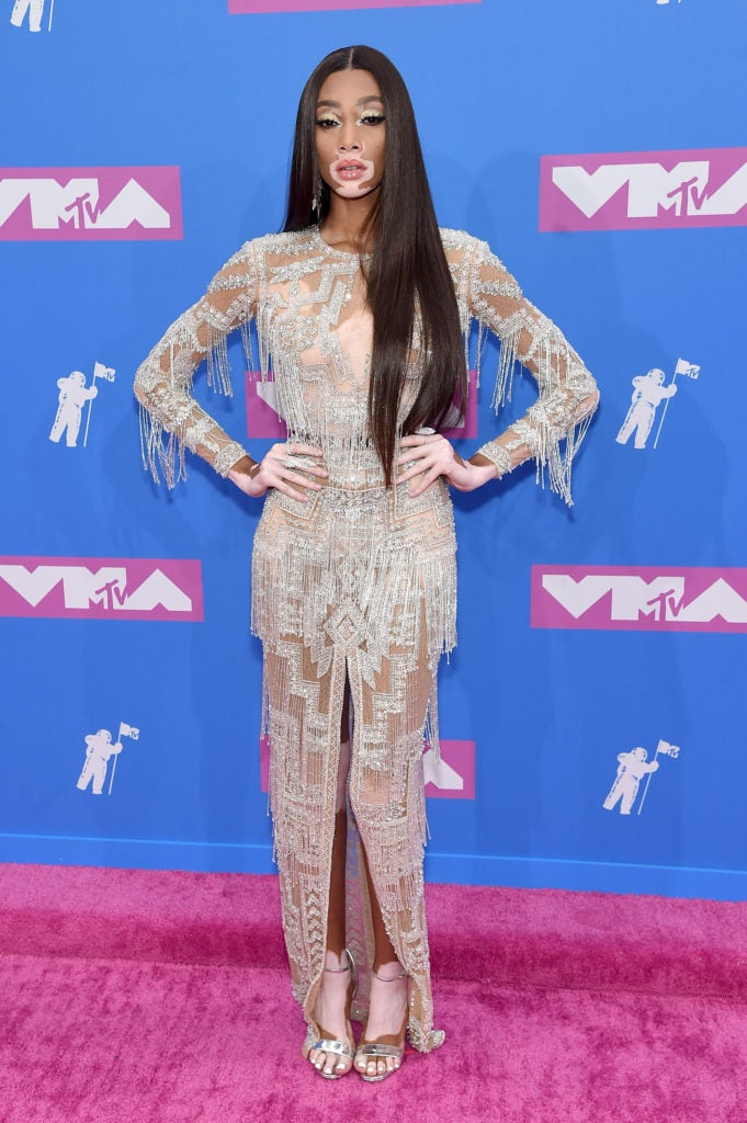 Winnie Harlow shines bright on the red carpet as she attends the 2018 MTV Video Music Awards at Radio City Music Hall in New York City.