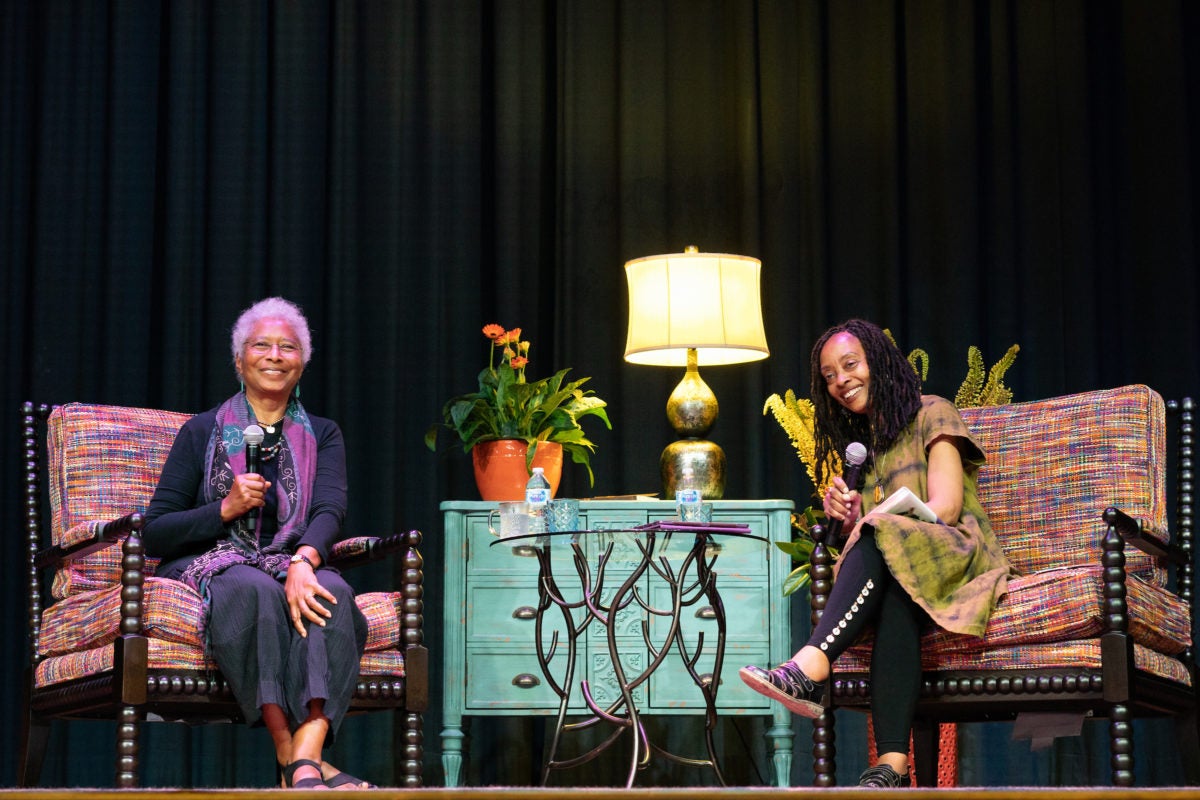 The crown jewel of the event was the conversation between Walker and professor/author Valerie Boyd, who not only co-chaired Alice Walker 75, but also collaborated with Walker on her upcoming book, Gathering Blossoms Under Fire: The Journals of Alice Walker, which debuts fall 2020. In the talk, Walker—who read a passage from The Color Purple—likened journaling to meditation and encouraged the audience to stay hopeful. “When we get to the edge of the cliff and it’s terrible, we don’t see how we can go forward,” she said. “This is a nightmare. Our children are committing suicide, the drug situation is horrendous, the leadership is dreadful. Though all of that…what can you do? Well my feeling is that one thing you can always do if you can move even a finger, you can dance.”
