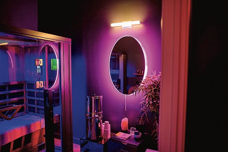 A traditional sauna only heats the air, whereas an infrared one creates a wavelength similar to the sun—without exposing you to UV rays. In the process, your internal temperature rises from the core, and that, Fonseca says, kick-starts your digestion, heart rate, and circulation. “Our studies have shown that 45 minutes in the infrared sauna is equivalent to a three- to four-mile light jog,” Fonseca explains. “And in terms of detoxifying effects, it’s equivalent to what you might get out of a seven-day juice cleanse.”