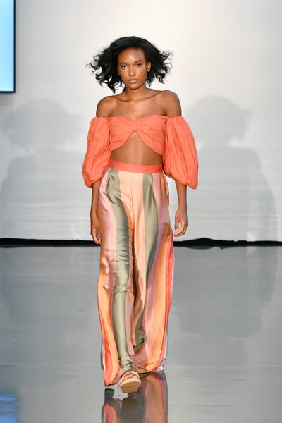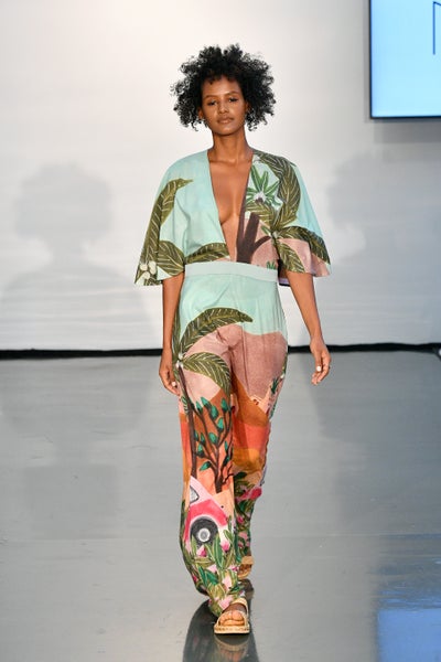 During ESSENCE Fashion House NYC, the Brooklyn-born brand sent tropical looks down the runway. Puffer sleeves, stripes, and printed satin pieces flowed one-by-one as models glowed in their Fe Noel looks.