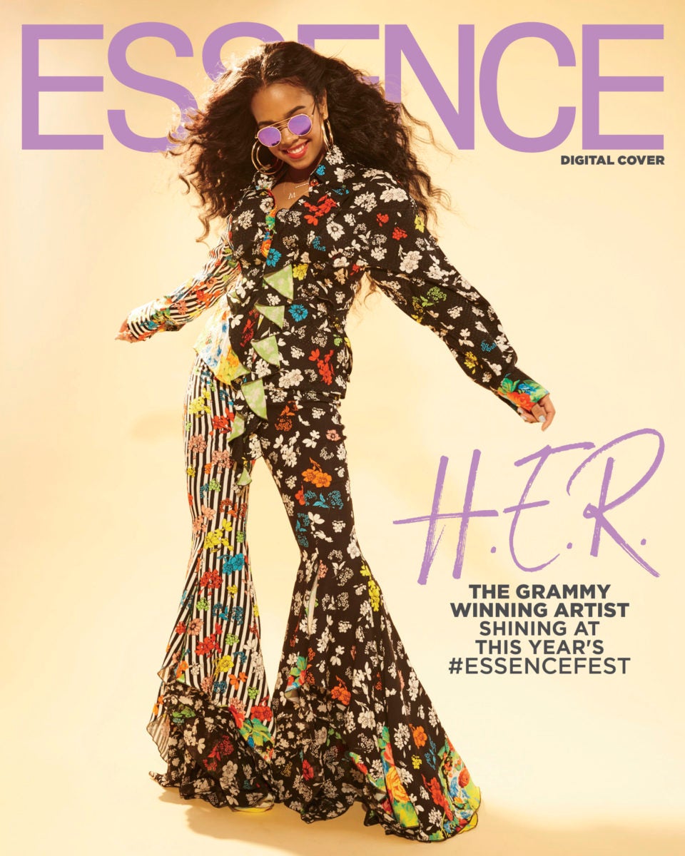 In less than three years, H.E.R. has accomplished more than many artists do in a lifetime. She’s taken home two Grammys—including the coveted award for Best R&B Album—and released chart-topping records, most notably the dizzyingly beautiful “Best Part” collab with Daniel Caesar, which garnered H.E.R. the second Grammy. She’s also set to perform at the 25th anniversary Essence Festival. And yet, ask H.E.R. about her standout moment from the past few whirlwind years, and she will tell you this: “A girl, she came up to me after a show and said, ‘You saved me.’ She told me that she’d been thinking of ending her life, but my songs helped her realize her worth. When I heard that, I almost cried. Like, wow, my music is necessary. I’m doing something right.”