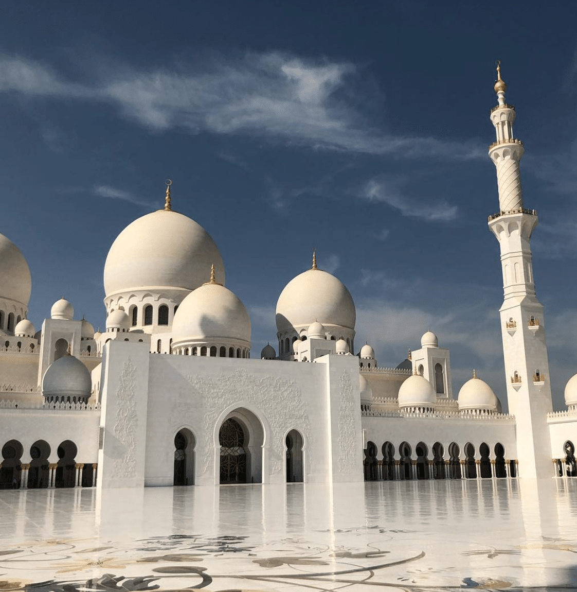 Anytime I travel, immersing myself into culture is always a must when I travel. At the top of my Abu Dhabi list was visiting a mosque for an introductory lesson in Islam. I took a group tour of Sheikh Zayed Grand Mosque, which is named after the founding father of the UAE. The mosque is one of the world’s largest mosques and carries inspiration from many Islamic countries (Morocco, Egypt, etc.) – a nod toward Zayed’s vision for Islamic diversity. The mosque spared no expense: its massive chandelier is an upside date palm with fronds made of jewels, and the prayer hall has the largest handmade carpet (my tour guide said it had two billion knots and it was made by women). Still, the most humbling aspect was learning only the Islamic names of God adorns its walls.