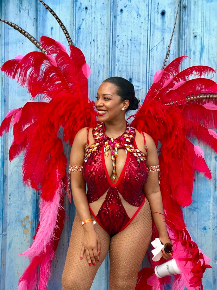 During Pretty Mas the vibrant colors and beauty of carnival are on full display. Masqueraders—as they are often referred to—wait a full year for this two-day climactic experience, which at its core is a celebration of freedom. “Playing ah Mas” is essentially your » safe zone, the space to be your most vulnerable, sexy, beautiful self. This is a time when women, in particular, shine. People admire all sizes and shapes in costumes that are made to accentuate, not hide, a woman’s natural curves.