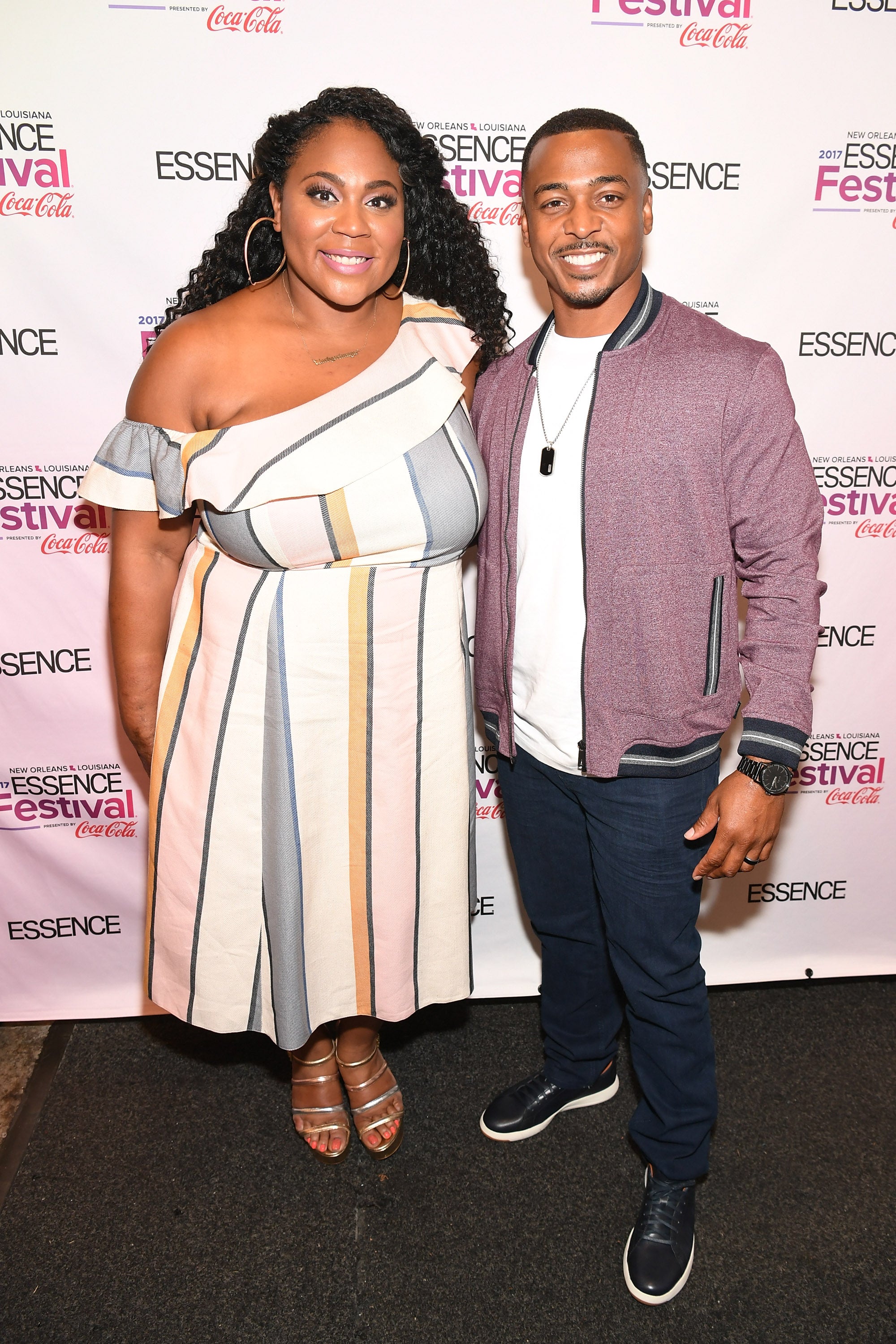 Lance Gross and Letoya Luckett pose backstage at the 2017 Essence Festival in New Orleans, Louisiana.