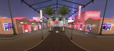 Once inside, use the arrows to check out each vendor in the marketplace and click the “E” icon to shop!